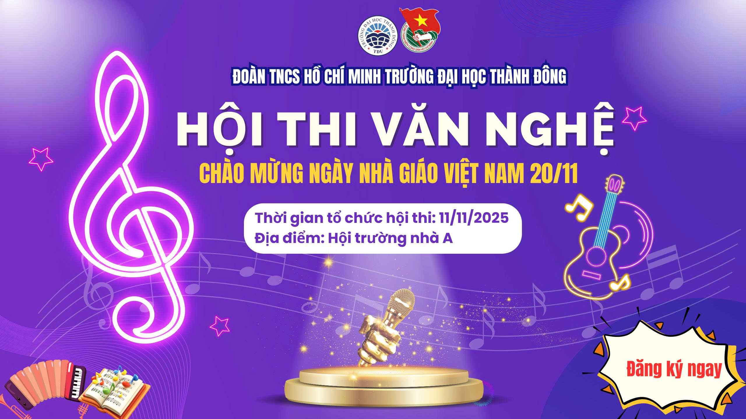 Hòa chung tinh thần ấy, Đoàn Thanh niên Trường Đại học Thành Đông long trọng tổ chức Hội thi Văn nghệ chào mừng Ngày Nhà giáo Việt Nam 20/11, một sân chơi nghệ thuật đầy sắc màu, nơi các bạn sinh viên được thể hiện tài năng, sự sáng tạo và lòng biết ơn sâu sắc dành tặng thầy cô kính mến.