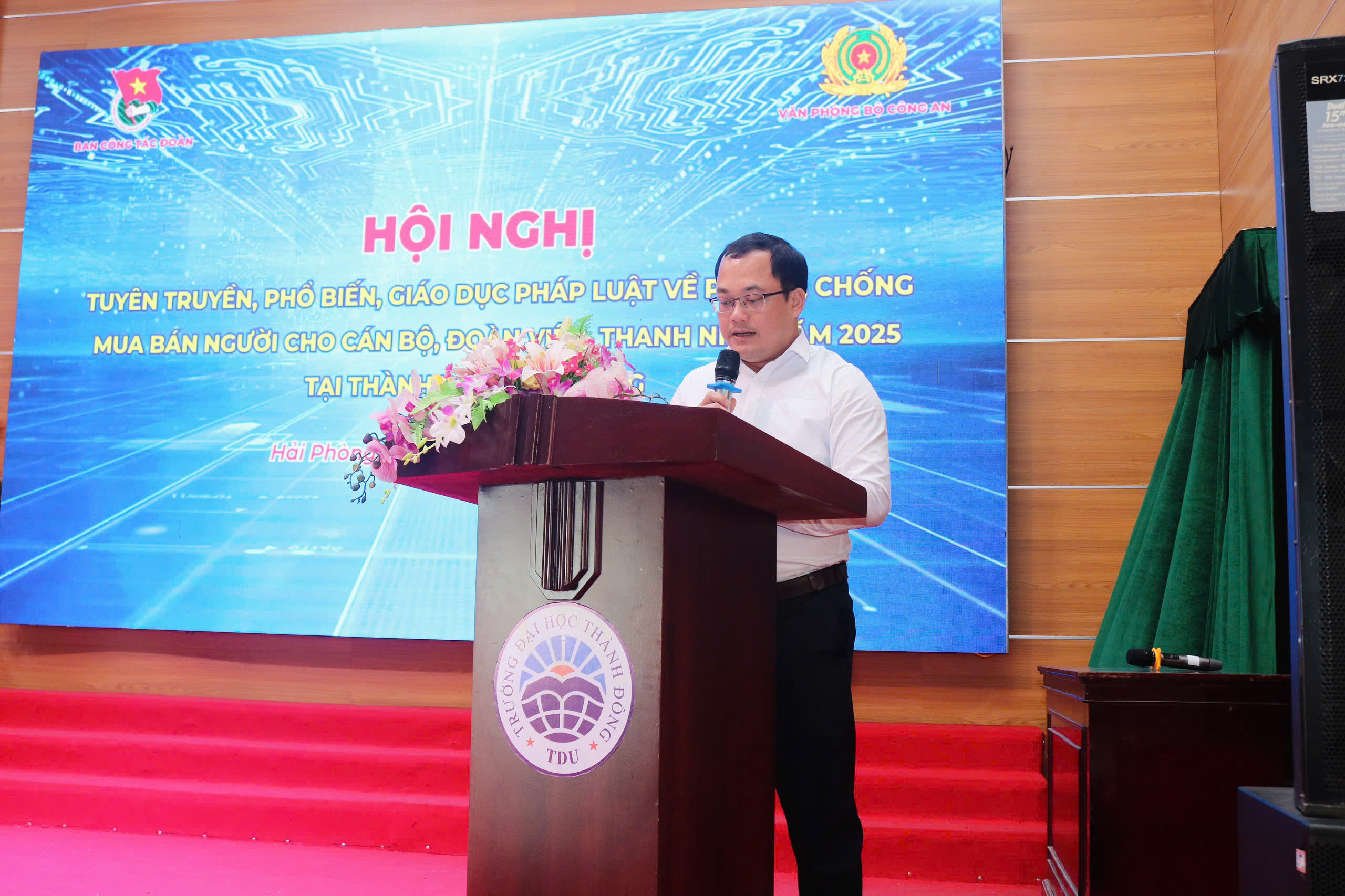 Ngày 26/11/2025, Trường Đại học Thành Đông phối hợp với Ban Chấp hành Đoàn Thành phố Hải Phòng tổ chức Hội nghị tập huấn kiến thức, kỹ năng kết hợp chương trình “Phiên tòa giả định” tuyên truyền về phòng, chống mua bán người năm 2025. Sự kiện diễn ra tại Hội trường lớn của Nhà trường với sự tham dự của đại diện Văn phòng Bộ Công an; Trung ương Đoàn; Thành đoàn Hải Phòng; Đảng ủy - HĐND phường Tứ Minh cùng hơn 300 cán bộ Đoàn, đoàn viên, sinh viên trên địa bàn thành phố.