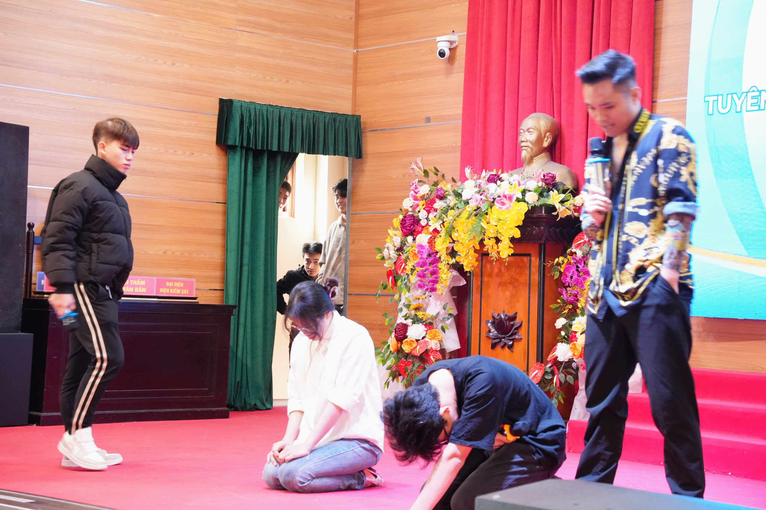 Sinh viên Khoa Luật tái hiện phiên tòa xét xử vụ án mua bán người, giúp đoàn viên hiểu rõ quy trình tố tụng và mức độ nghiêm minh của pháp luật.