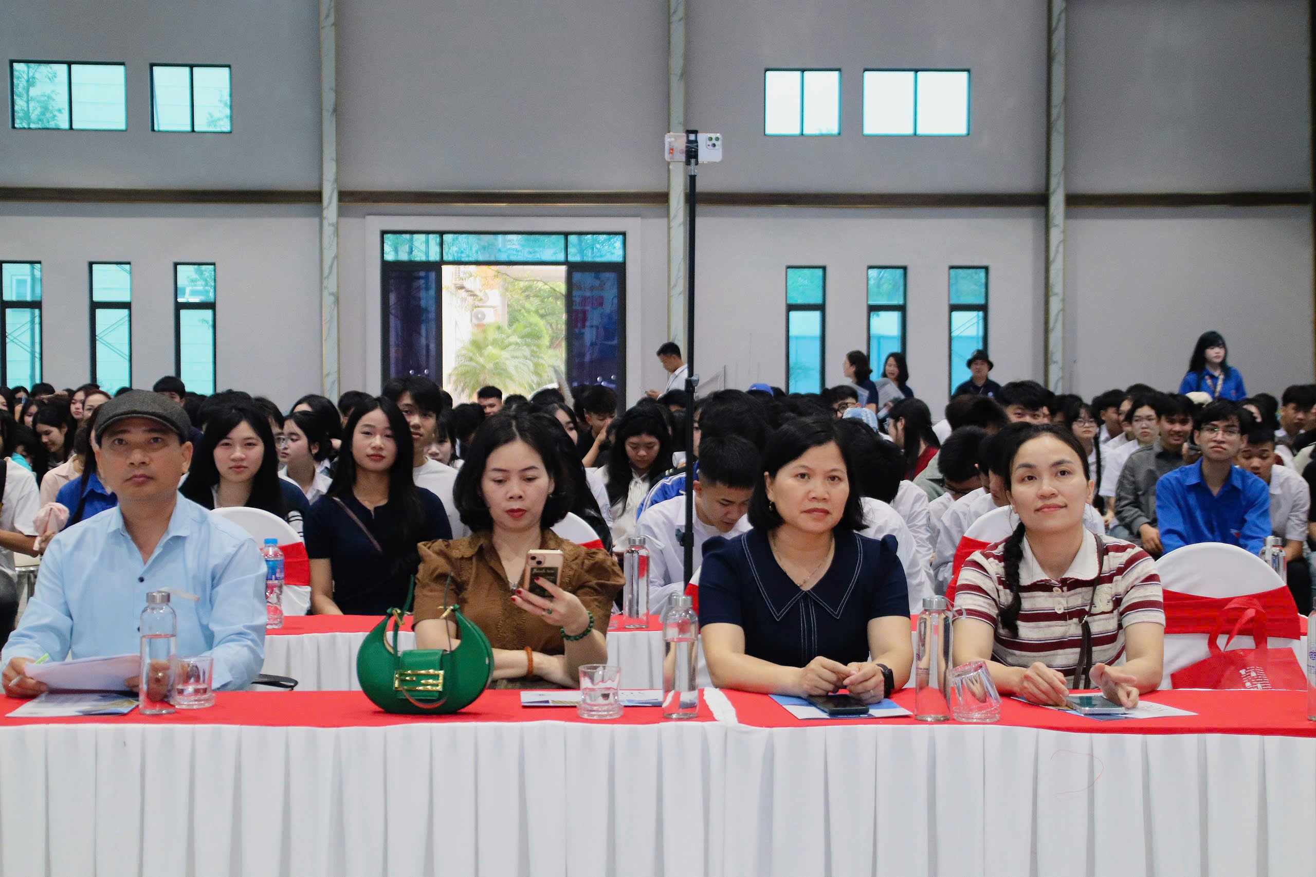 Không gian hội trường trở nên sôi nổi với sự tham gia tích cực và tinh thần học hỏi của đông đảo học sinh THPT.