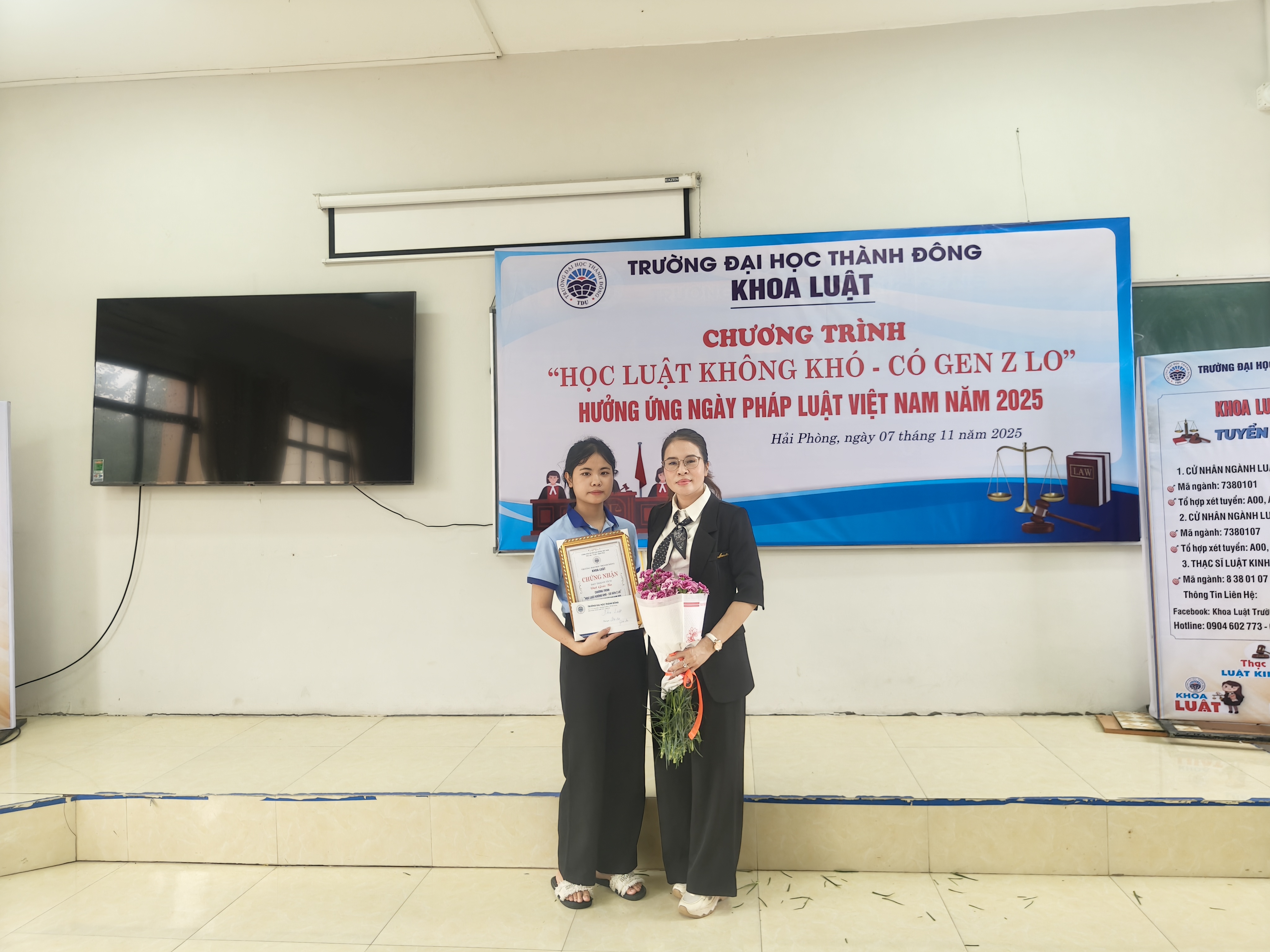Chương trình “Học luật không khó – Có Gen Z lo” không chỉ là sân chơi học thuật mà còn là điểm nhấn trong chuỗi hoạt động hưởng ứng Ngày Pháp luật Việt Nam của Trường Đại học Thành Đông. Hoạt động góp phần khẳng định tinh thần đổi mới trong giảng dạy và học tập của Khoa Luật – nơi mỗi sinh viên được khơi dậy đam mê, bản lĩnh và trách nhiệm với cộng đồng.