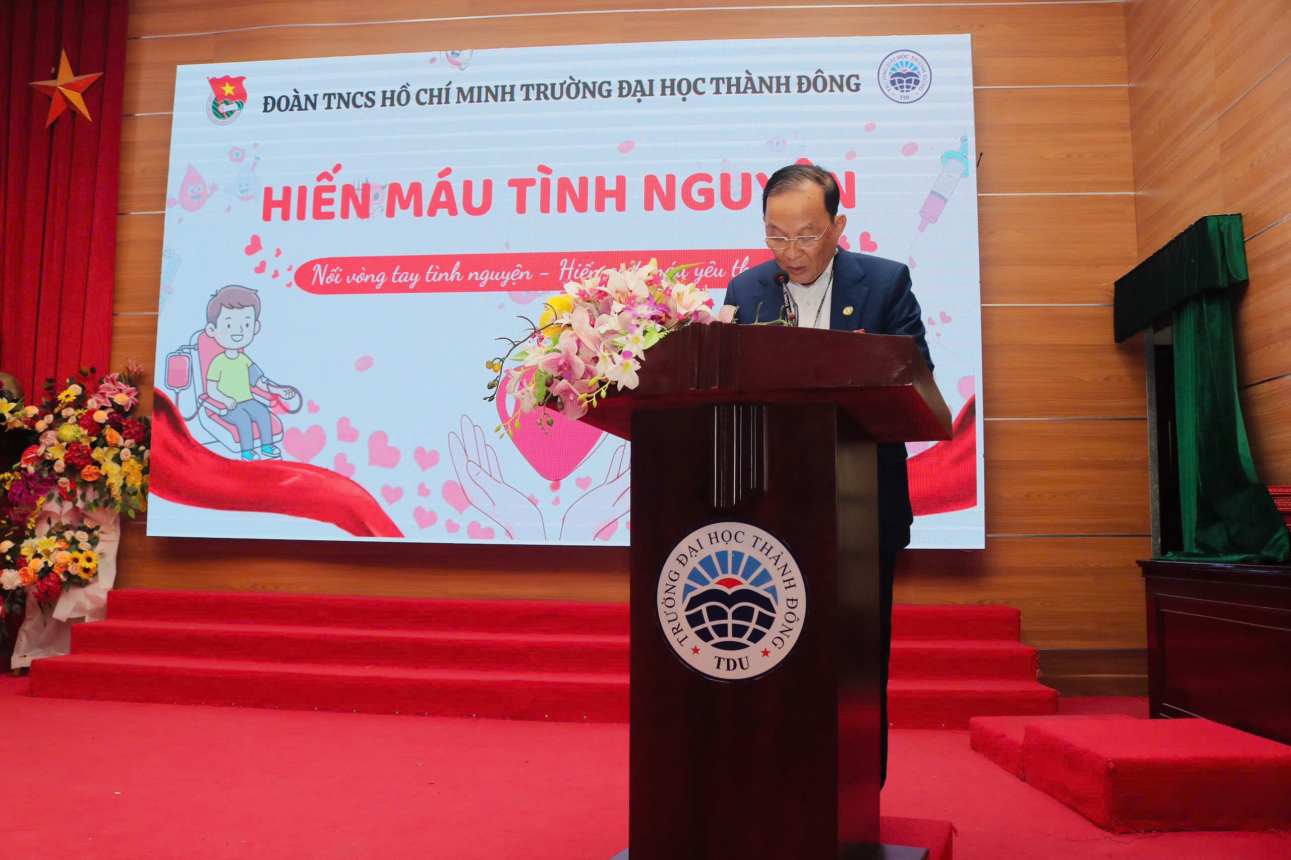 Phát biểu tại sự kiện, đại diện Ban Giám hiệu: PGS, TS. Lê Văn Hùng - Chủ tịch Hội đồng Trường, Hiệu trưởng ghi nhận và đánh giá cao tinh thần trách nhiệm của tuổi trẻ Thành Đông, đồng thời nhấn mạnh rằng hiến máu nhân đạo không chỉ là hành động cứu người, mà còn là biểu hiện sống động của lòng nhân ái, trách nhiệm xã hội và giá trị cộng đồng. Đại diện Đoàn trường cũng chia sẻ mong muốn nhân rộng hơn nữa phong trào hiến máu trong sinh viên, góp phần hình thành lối sống đẹp trong môi trường giáo dục đại học.