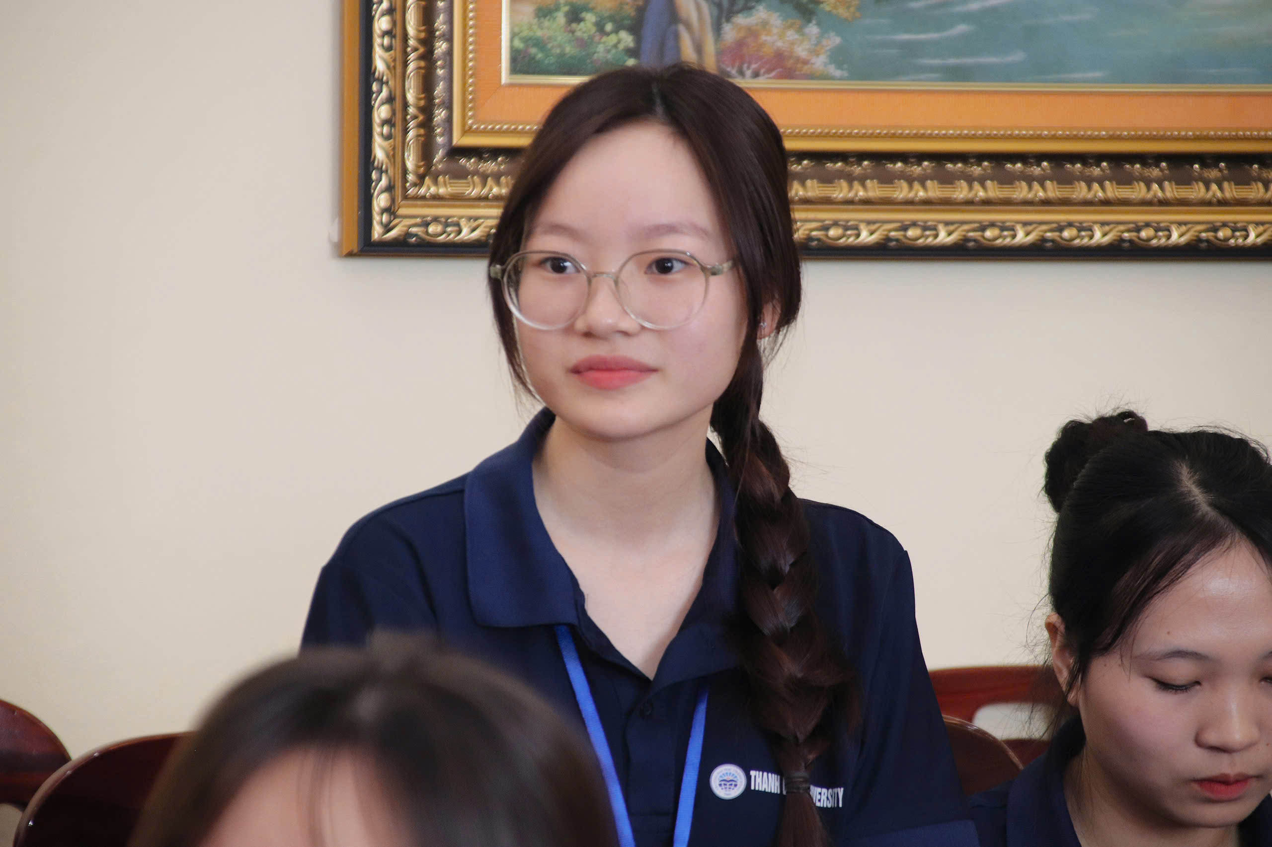Trong phần trao đổi, sinh viên ngành Ngôn ngữ Trung Quốc đã chủ động đặt câu hỏi liên quan đến điều kiện tham gia, môi trường làm việc và chế độ thực tập. Sự quan tâm và tinh thần cầu thị của sinh viên cho thấy sức hút của chương trình cũng như nhu cầu trải nghiệm môi trường quốc tế ngày càng cao.