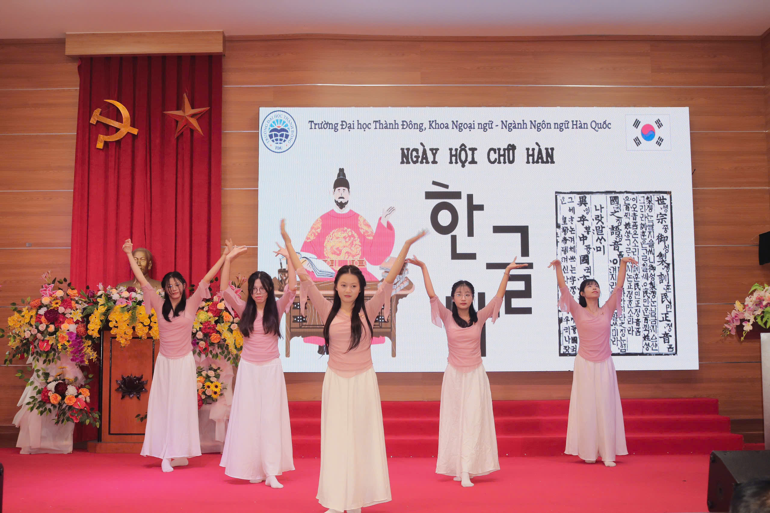 Ngày 09/10/2025, tại Hội trường lớn Trường Đại học Thành Đông, Khoa Ngoại ngữ long trọng tổ chức chương trình “Kỷ niệm Ngày Tiếng Hàn Quốc (Hangul Day)” – sự kiện ý nghĩa nhằm tôn vinh ngôn ngữ và văn hóa Hàn Quốc, đồng thời tăng cường giao lưu hợp tác giữa Nhà trường và các doanh nghiệp Hàn Quốc.