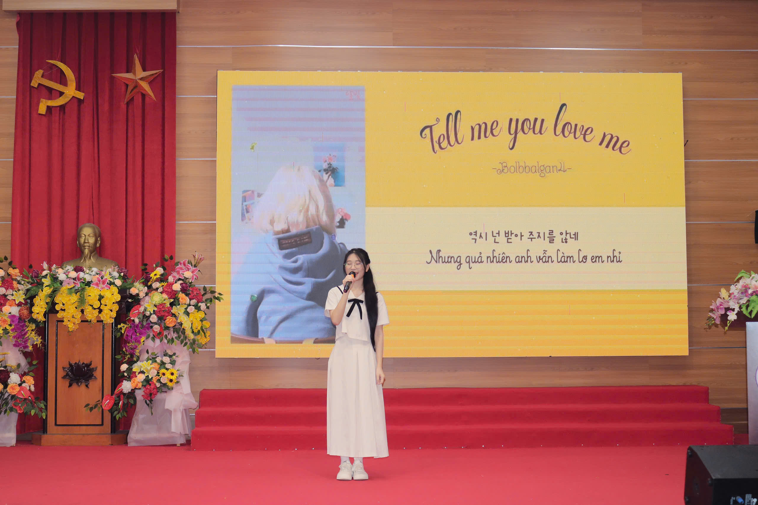 Sau phần phát biểu khai mạc của Ban Giám hiệu và đại diện Hiệp hội Việt - Hàn, chương trình bước vào nội dung được mong chờ nhất: Cuộc thi nói tiếng Hàn và biểu diễn K-POP.
