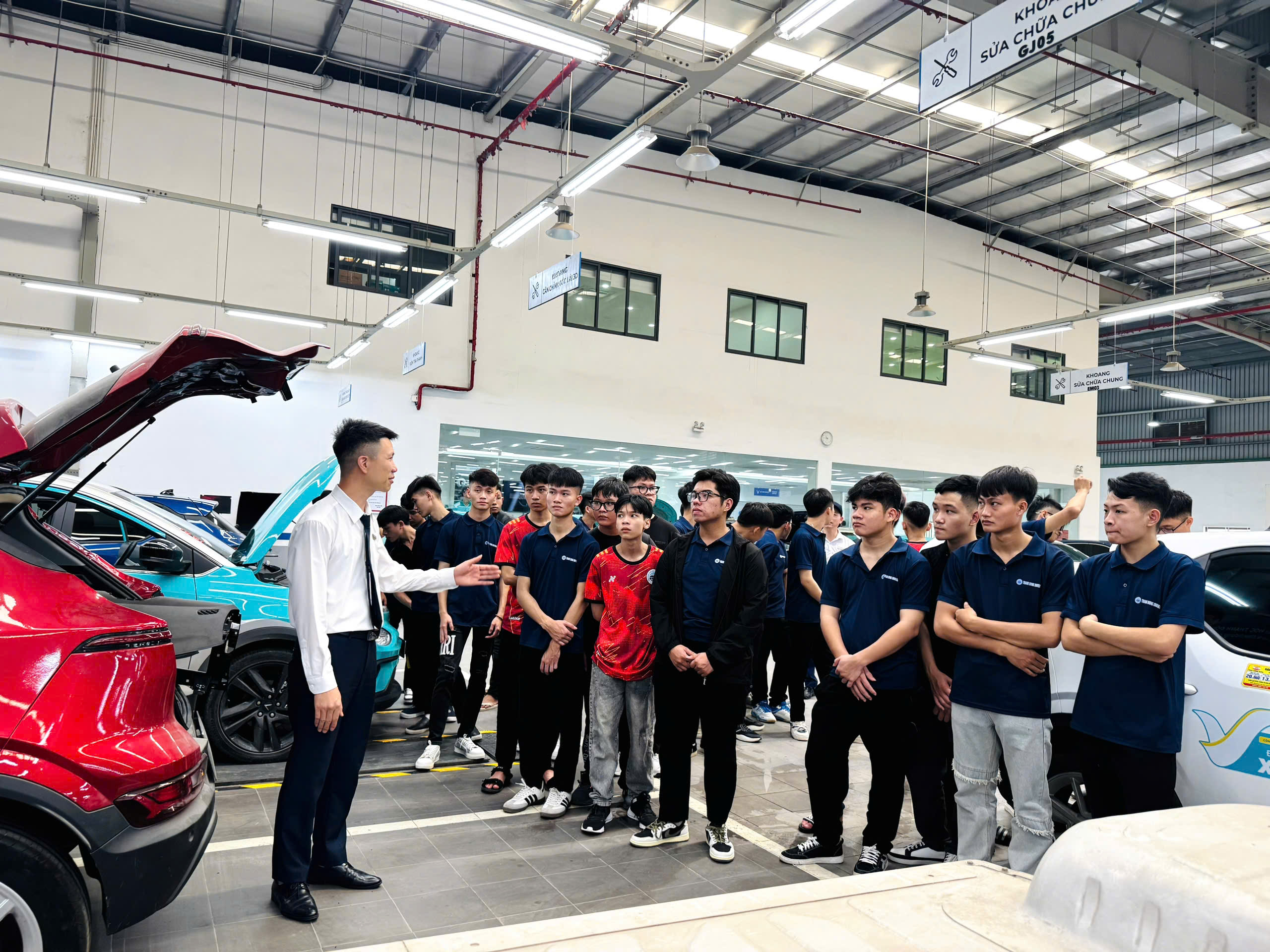 Tại mỗi điểm đến, sinh viên được tham quan xưởng sản xuất, khu bảo dưỡng, dây chuyền lắp ráp và trung tâm dịch vụ khách hàng, đồng thời trao đổi trực tiếp với các kỹ sư, chuyên gia kỹ thuật và quản lý doanh nghiệp.