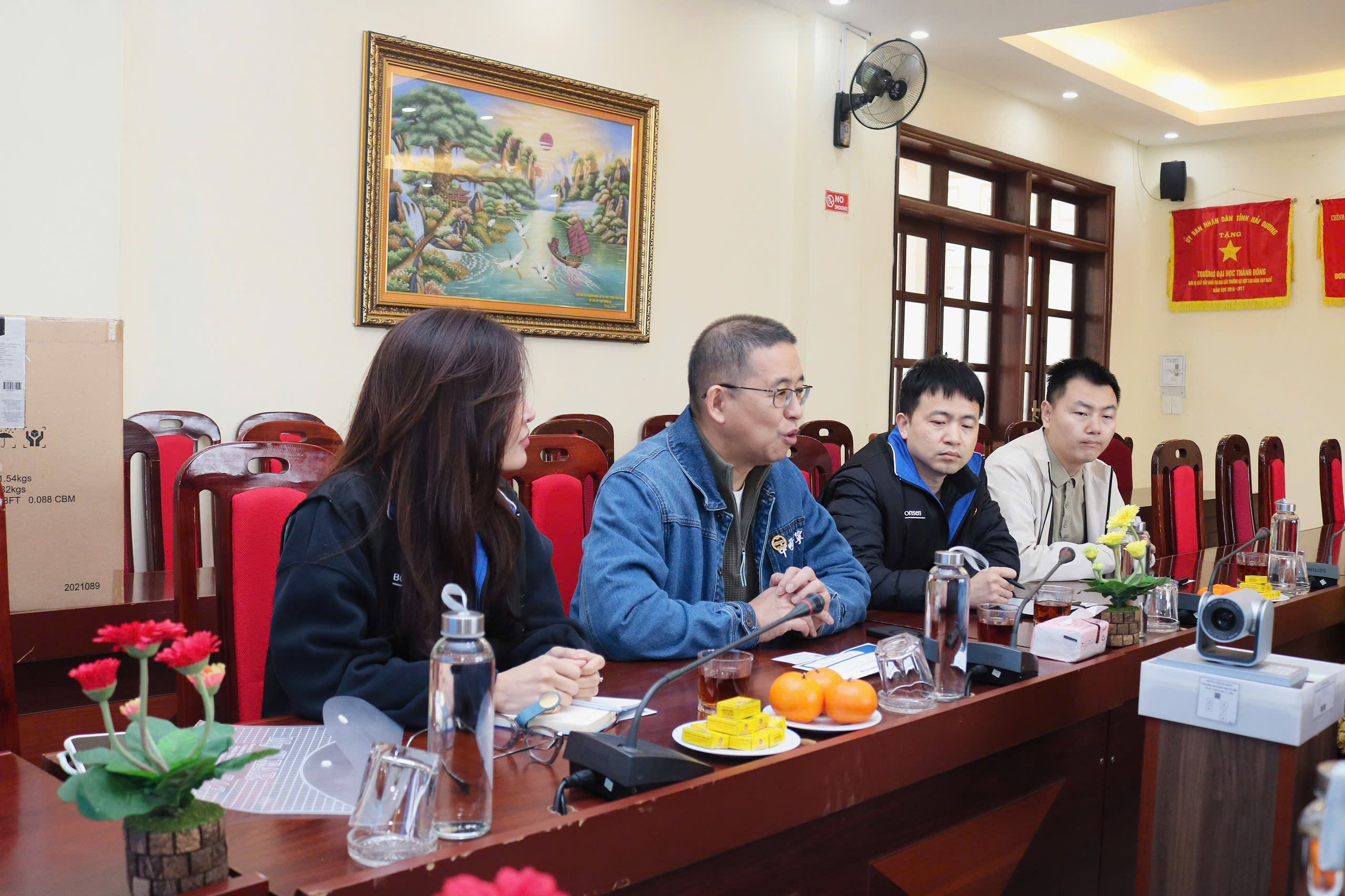 Nhân dịp này, Công ty TNHH Công nghệ Sáng tạo Bonsen Việt Nam đã trao tặng Trường Đại học Thành Đông khoản tài trợ 50 triệu đồng cùng các thiết bị văn phòng, trực tiếp phục vụ công tác quản lý, giảng dạy và tổ chức các hoạt động đào tạo - nghiên cứu tại Nhà trường. Nguồn hỗ trợ này được kỳ vọng sẽ góp phần cải thiện điều kiện làm việc của đội ngũ cán bộ, giảng viên, đồng thời nâng cao hiệu quả triển khai các chương trình hợp tác với doanh nghiệp. Buổi làm việc không chỉ dừng lại ở việc trao đổi chủ trương mà đã làm rõ những hướng phối hợp cụ thể trong thời gian tới, tạo nền tảng để hai bên từng bước triển khai các hoạt động gắn đào tạo với nhu cầu thực tiễn sản xuất, mang lại lợi ích thiết thực cho sinh viên, nhà trường và cộng đồng doanh nghiệp.