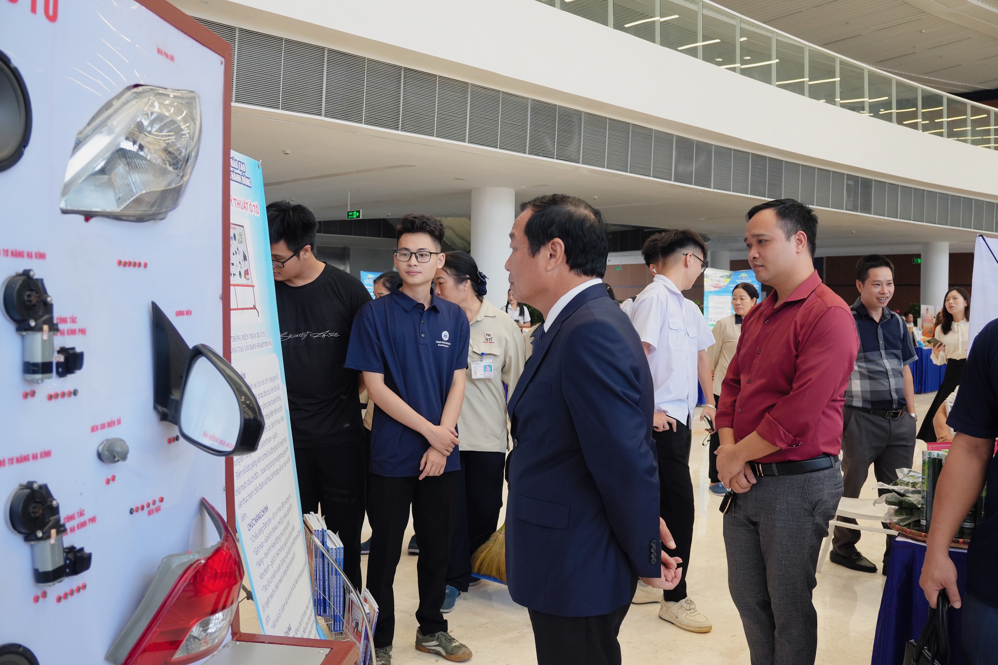 Gian trưng bày của Trường Đại học Thành Đông thu hút đông đảo khách tham quan với nhiều mô hình, sản phẩm sáng tạo do giảng viên và sinh viên nghiên cứu, chế tạo.