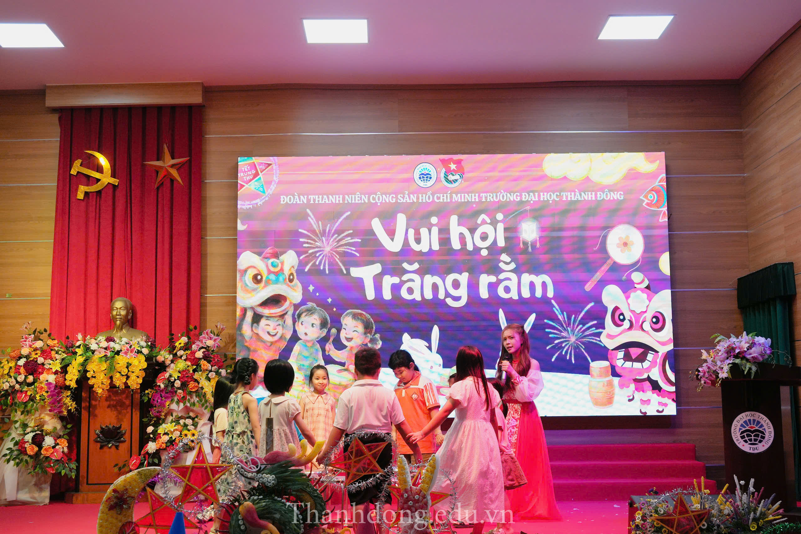 Tối ngày 2/10/2025, tại sân khấu Trường Đại học Thành Đông, chương trình “Đêm hội Trăng rằm 2025” đã diễn ra trong không khí tưng bừng, rộn ràng. Hàng trăm em nhỏ cùng gia đình và đông đảo sinh viên đã cùng nhau tham dự, hòa mình vào không gian rực rỡ ánh đèn lồng, âm vang tiếng trống hội và tiếng cười giòn giã.