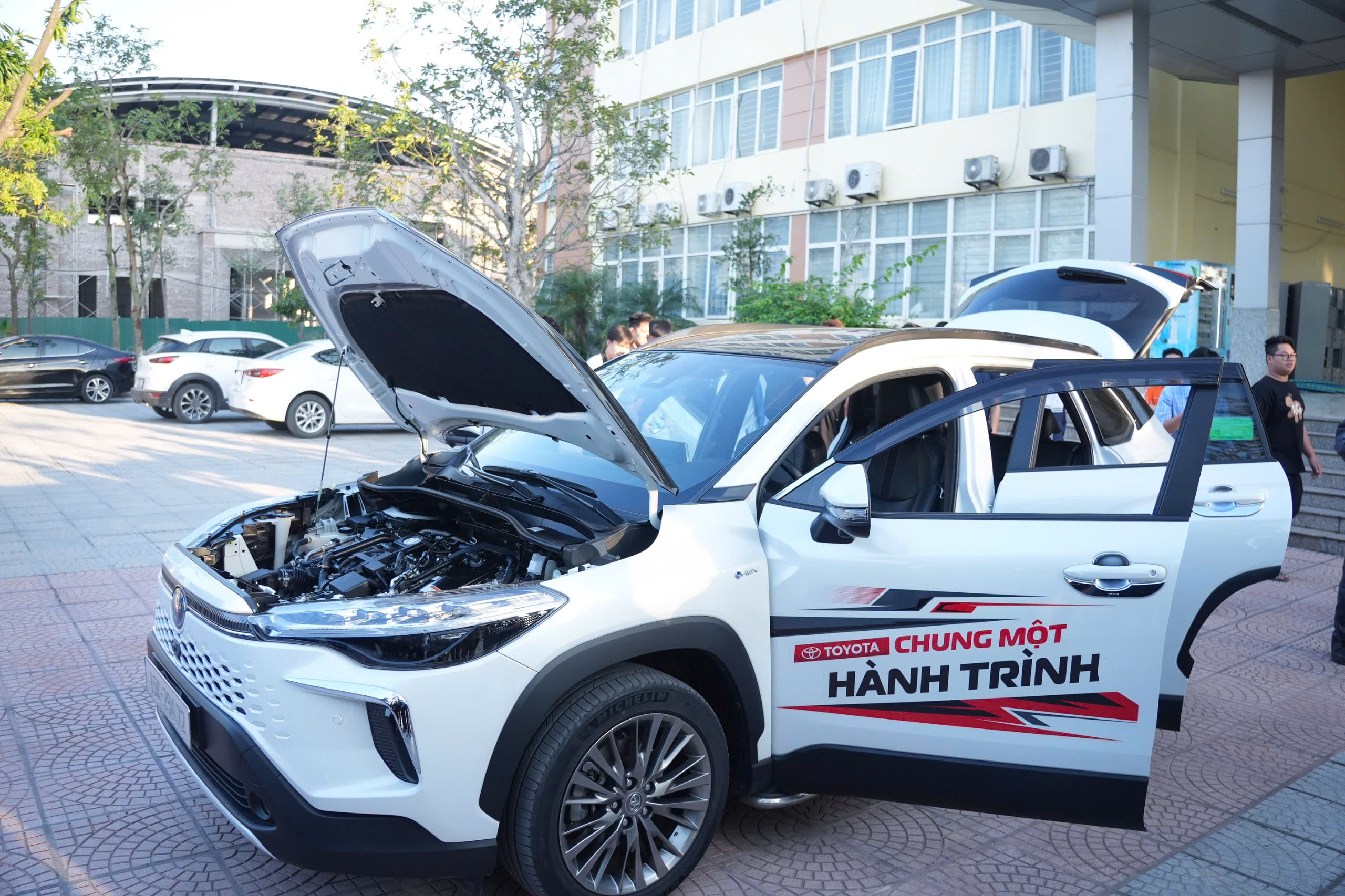 Đặc biệt, Toyota Nankai Hải Phòng mang đến buổi đào tạo một chiếc Toyota Corolla Cross Hybrid 2025 để sinh viên trực tiếp quan sát, thực hành và tiếp cận công nghệ trên phương tiện thực tế. Hoạt động trải nghiệm này nhận được sự hưởng ứng nhiệt tình của sinh viên, giúp các em hiểu rõ hơn về quy trình kiểm tra, bảo dưỡng và vận hành hệ thống Hybrid.