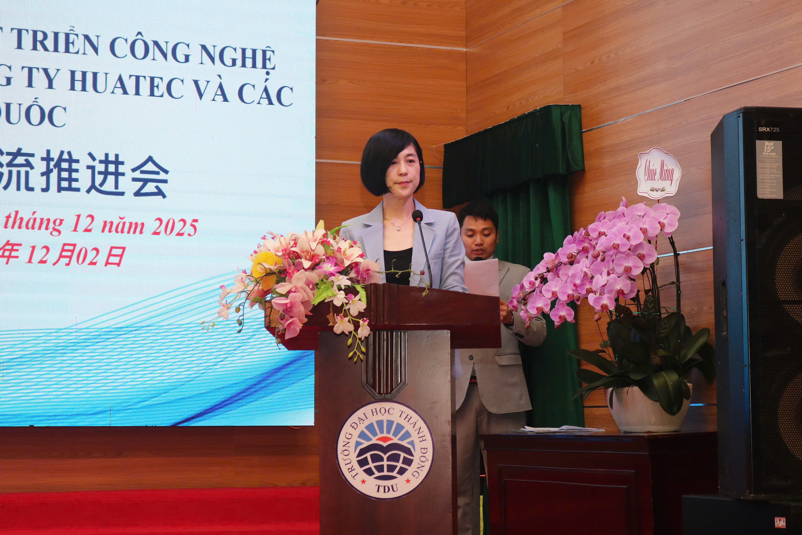 Tại chương trình, bà Lương Thư, Phó Tổng Giám đốc Công ty HUATEC, khẳng định nỗ lực hợp tác của hai bên trong thời gian qua và đánh giá cao tiềm năng phát triển của Viện JingShi Việt Nam tại Trường Đại học Thành Đông. Đại diện HUATEC bày tỏ mong muốn tiếp tục đồng hành cùng Nhà trường trong việc mở rộng quy mô đào tạo, đẩy mạnh chuyển giao công nghệ và triển khai hiệu quả các chương trình hỗ trợ doanh nghiệp.
