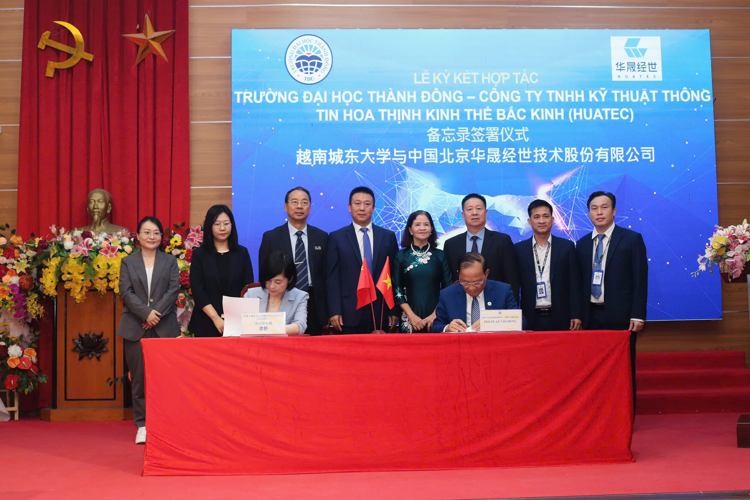 Lễ ký kết biên bản ghi nhớ hợp tác giai đoạn 2 giữa Trường Đại học Thành Đông và Công ty HUATEC, do PGS, TS. Lê Văn Hùng và bà Lương Thư – Phó Tổng Giám đốc HUATEC đại diện hai bên thực hiện, trước sự chứng kiến của đông đảo đại biểu quốc tế.