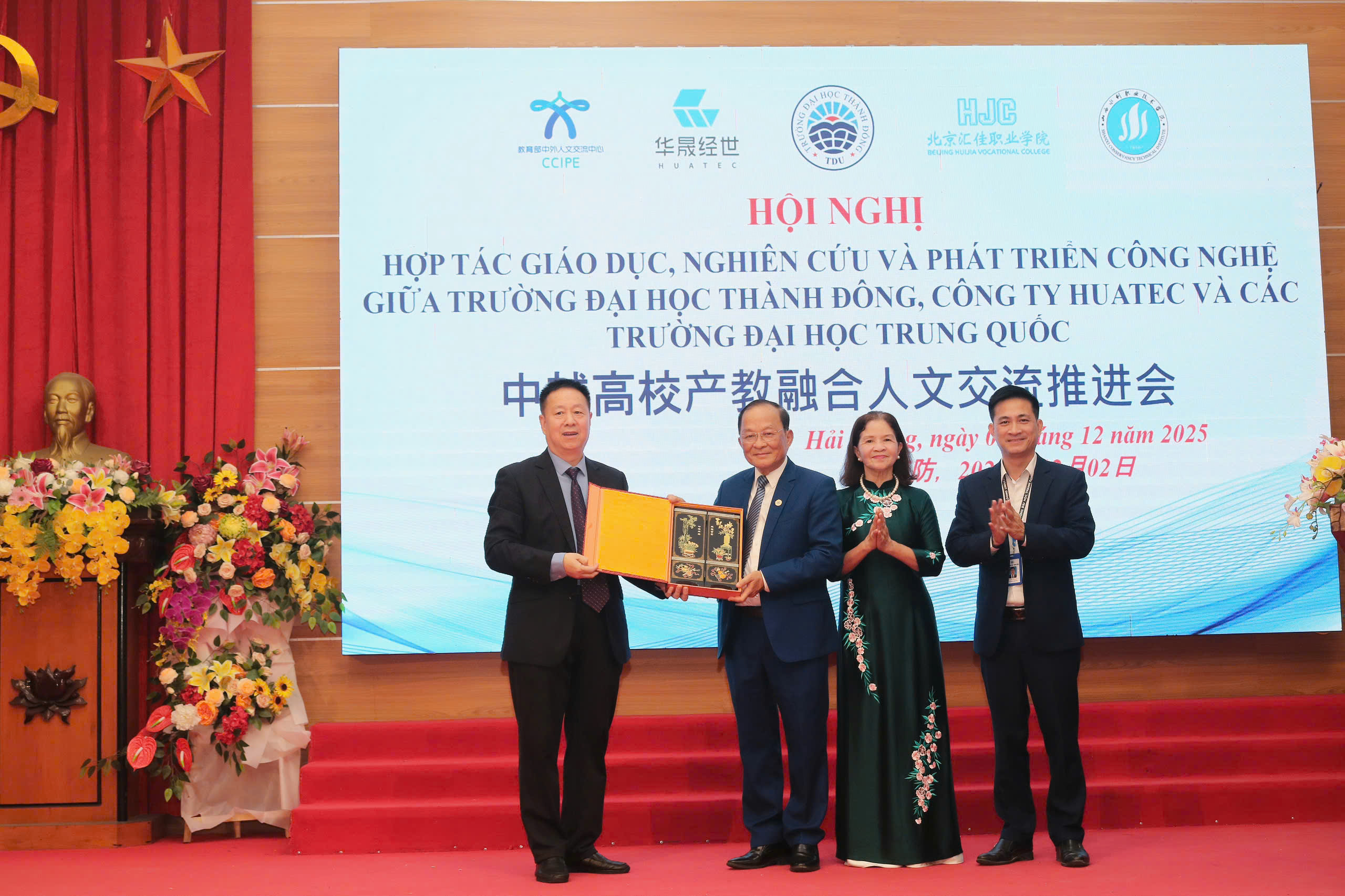 Kết thúc hội nghị, Trường Đại học Thành Đông trao quà lưu niệm tới đoàn đại biểu quốc tế, thể hiện sự trân trọng và tinh thần hợp tác thân thiện. Các đối tác Trung Quốc cũng gửi tặng Nhà trường những phần quà ý nghĩa như lời cảm ơn và cam kết tiếp tục đồng hành trong chặng đường hợp tác thời gian tới.