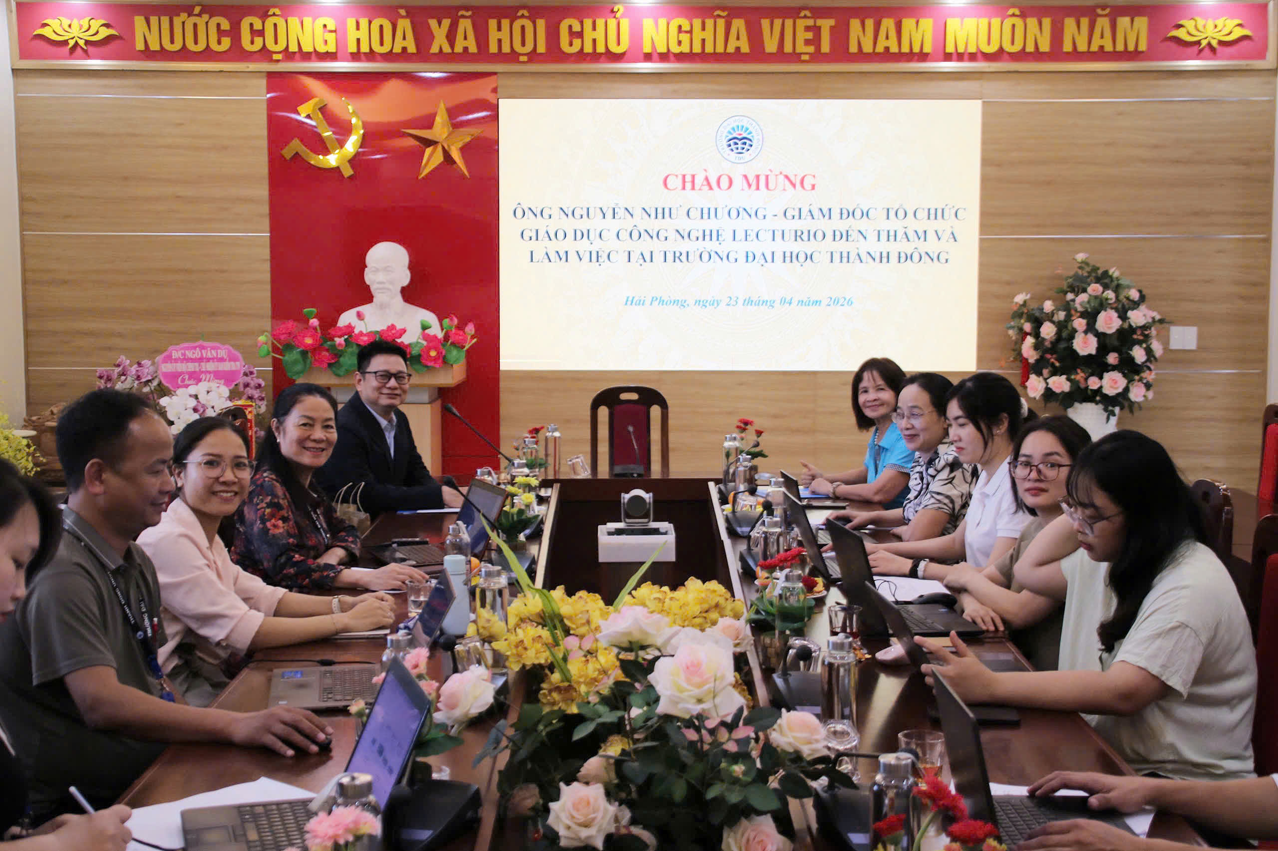 Sáng ngày 23/4/2026, tại Trường Đại học Thành Đông đã diễn ra hội thảo và tập huấn với chủ đề “Ứng dụng Lecturio và trí tuệ nhân tạo AI trong chuyển đổi số và đào tạo các ngành khoa học sức khỏe”. Chương trình do nhà trường phối hợp với Lecturio tổ chức, tập trung giới thiệu nền tảng học tập số và hướng dẫn khai thác các tính năng phục vụ giảng dạy, học tập và quản lý đào tạo.