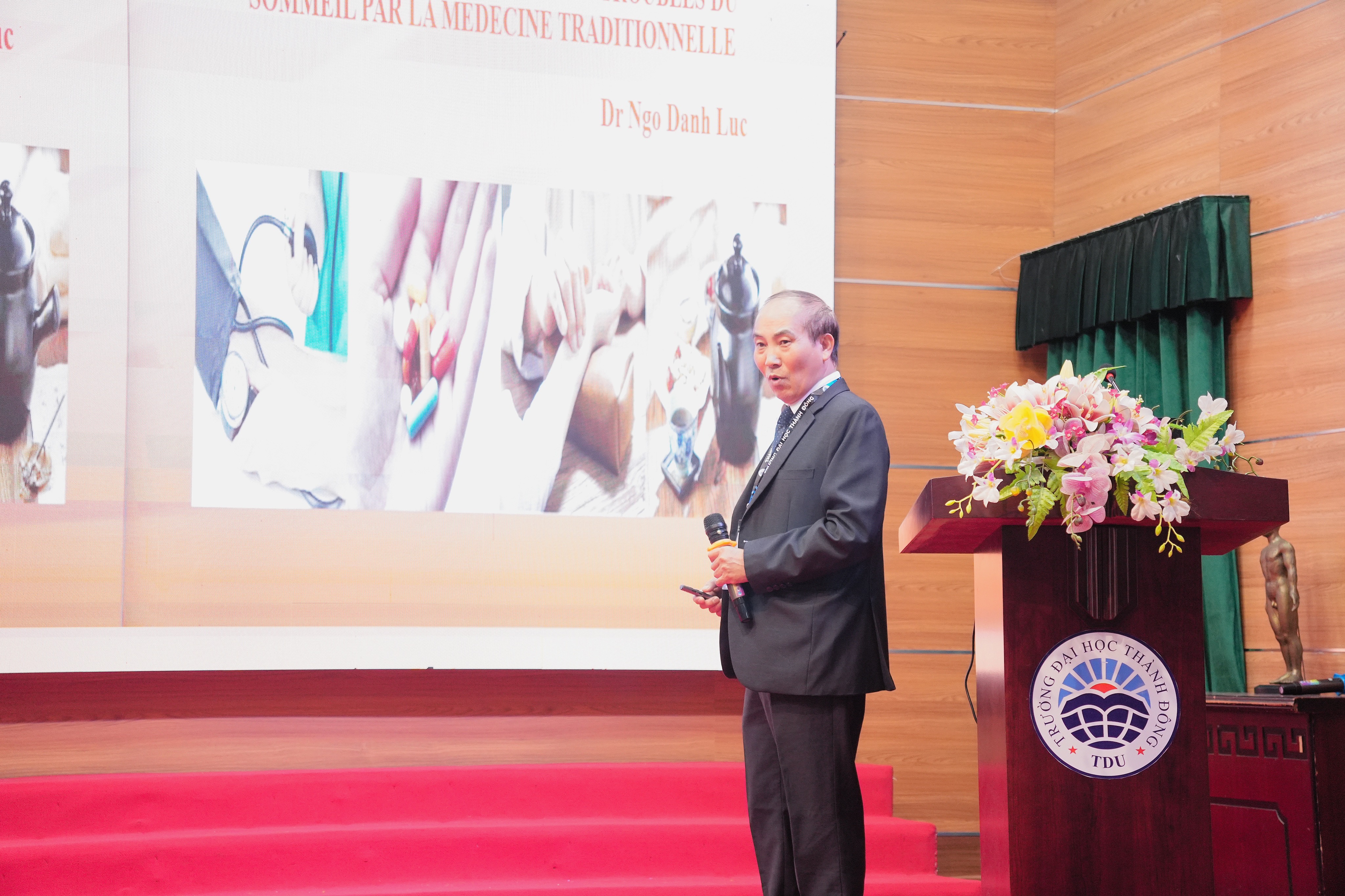 Về phía Trường Đại học Thành Đông, hai chuyên gia TS.BS. Nguyễn Thị Huệ và TS.BS. Ngô Danh Lục đóng góp hai báo cáo mang đậm bản sắc Y học cổ truyền gồm “Rối loạn giấc ngủ dưới góc nhìn của Y học cổ truyền” và “Các phương pháp điều trị rối loạn giấc ngủ trong Y học cổ truyền”. Các bài tham luận không chỉ thể hiện chiều sâu học thuật, cập nhật tri thức y học tiên tiến, mà còn mở ra hướng tiếp cận toàn diện, kết hợp hài hòa giữa Đông và Tây y trong chăm sóc sức khỏe giấc ngủ cho cộng đồng. Thông qua các tham luận, hội thảo góp phần cập nhật tri thức mới, thúc đẩy nghiên cứu lâm sàng, đồng thời tăng cường hợp tác chuyên môn Việt - Pháp trong lĩnh vực y học tích hợp.