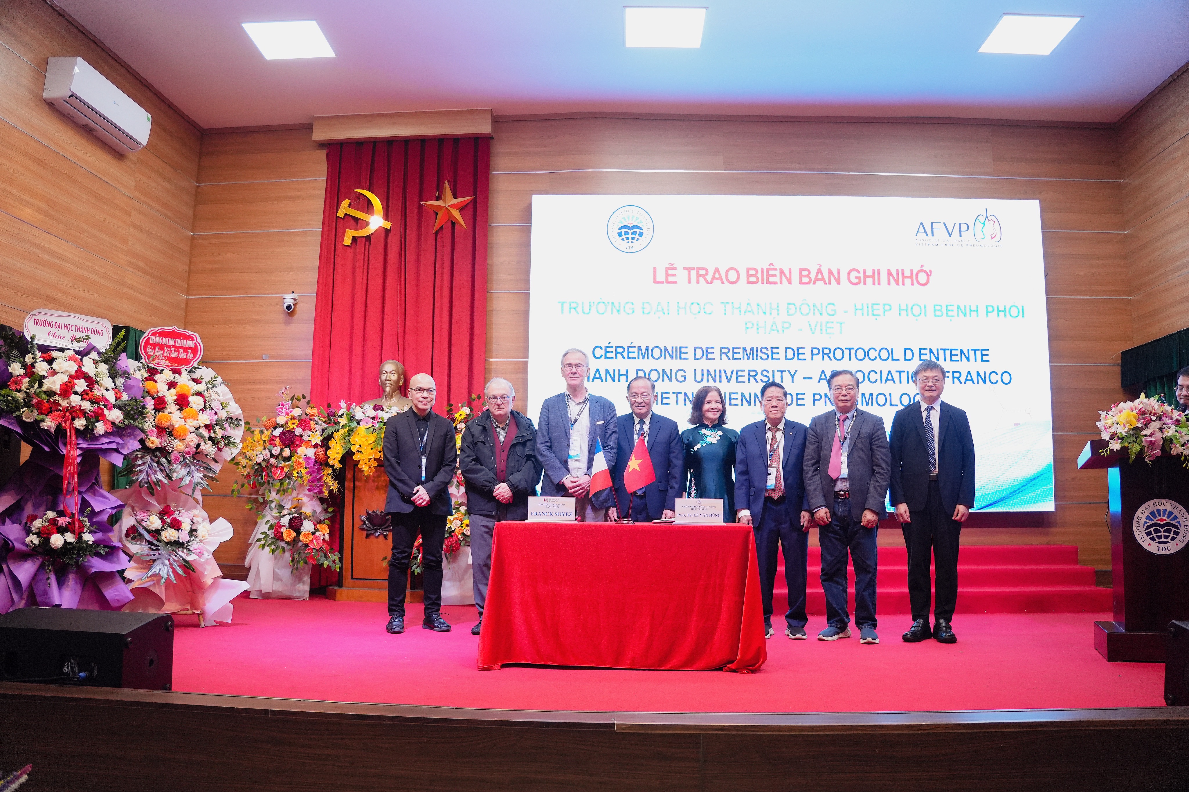 Lễ ký kết được thực hiện bởi PGS,TS. Lê Văn Hùng - Hiệu trưởng Trường Đại học Thành Đông và GS.TS. Francis Martin - Chủ tịch Hiệp hội Bệnh phổi Pháp - Việt, trước sự chứng kiến của đại biểu, khách mời, các nhà khoa học hai nước. Sự kiện khẳng định vị thế của Trường Đại học Thành Đông trong chiến lược quốc tế hóa hoạt động nghiên cứu và đào tạo khối ngành sức khỏe, hướng tới xây dựng trung tâm y học ứng dụng tiên tiến, gắn kết chặt chẽ giữa nghiên cứu – giảng dạy – thực hành – hợp tác quốc tế.