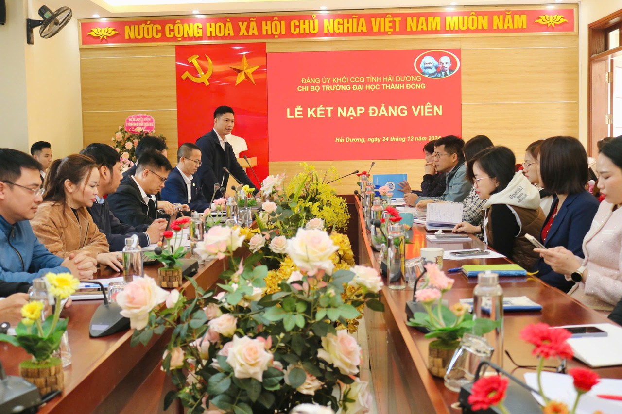 Sáng ngày 24/12/2024, Chi bộ Trường Đại học Thành Đông tổ chức Lễ kết nạp Đảng viên mới cho 6 quần chúng ưu tú. Buổi lễ là dấu mốc quan trọng trong hành trình phấn đấu của các cá nhân được vinh dự đứng vào hàng ngũ của Đảng Cộng sản Việt Nam.