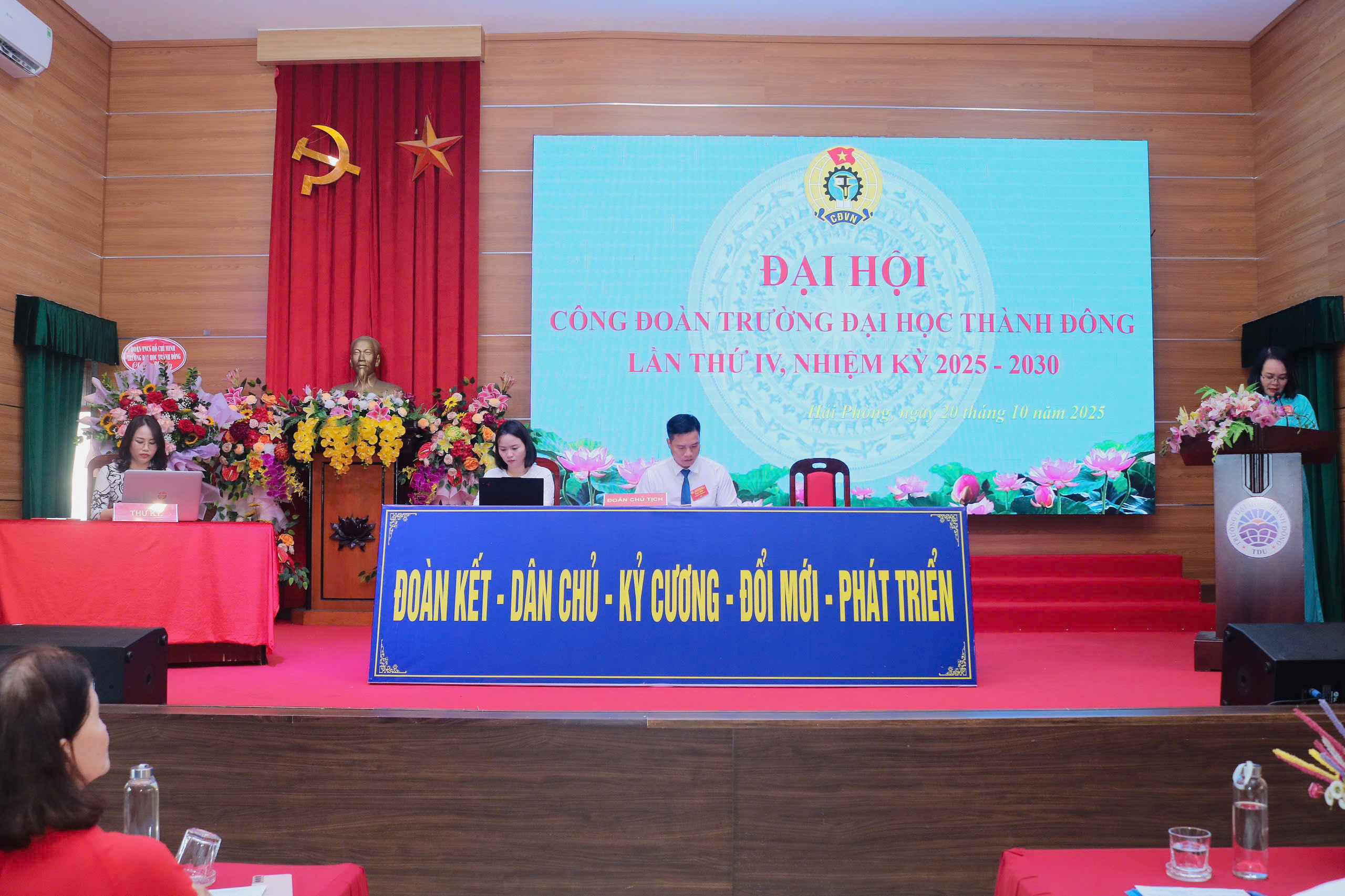 Ngày 20 tháng 10 năm 2025, trong không khí phấn khởi chào mừng Ngày Phụ nữ Việt Nam 20/10 và thi đua lập thành tích hướng tới năm học mới, Trường Đại học Thành Đông đã long trọng tổ chức Đại hội Công đoàn Trường Đại học Thành Đông, nhiệm kỳ 2025–2030. Đây là sự kiện chính trị có ý nghĩa quan trọng, đánh dấu bước phát triển mới của tổ chức Công đoàn Nhà trường trong giai đoạn tiếp theo.