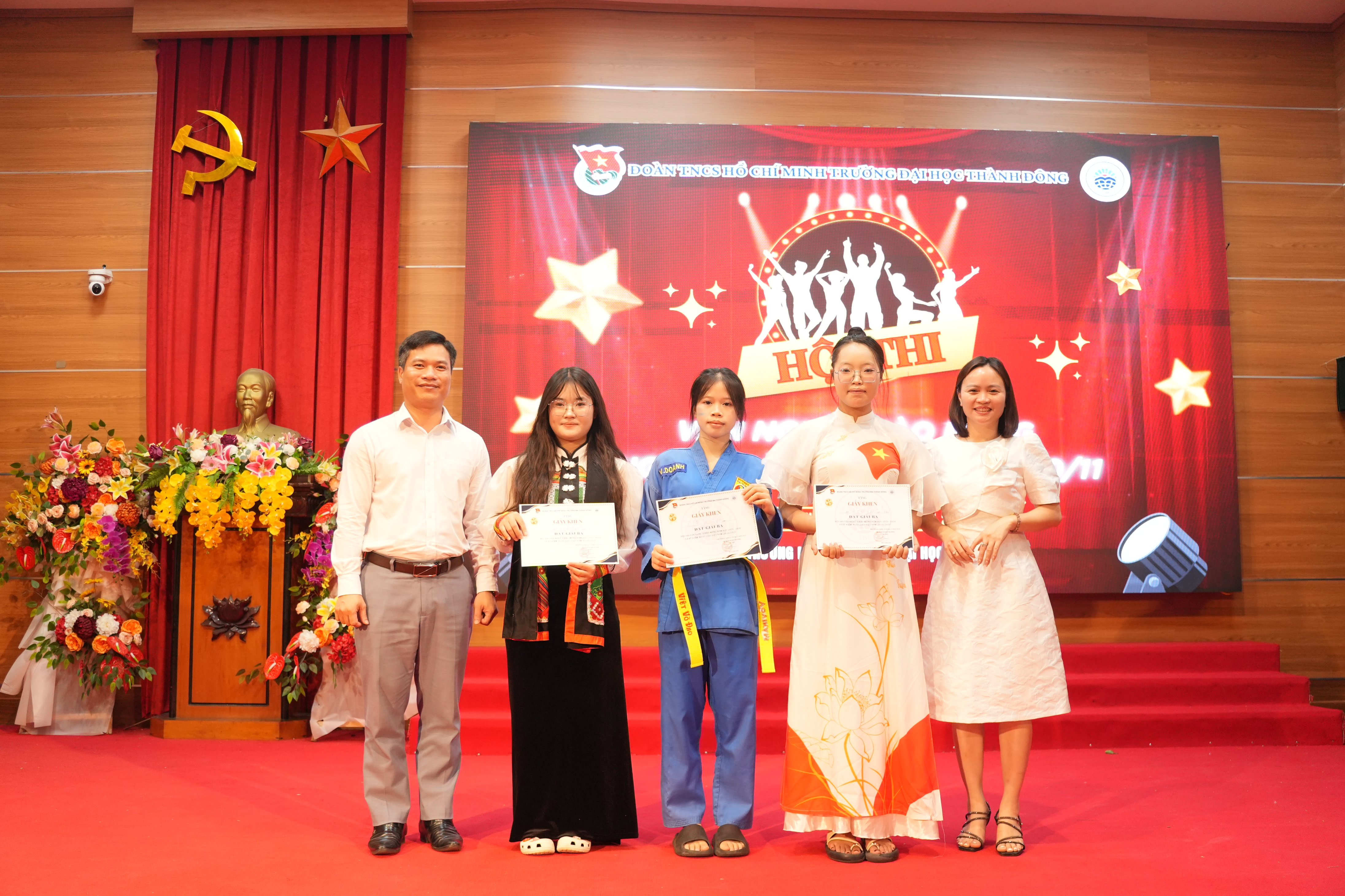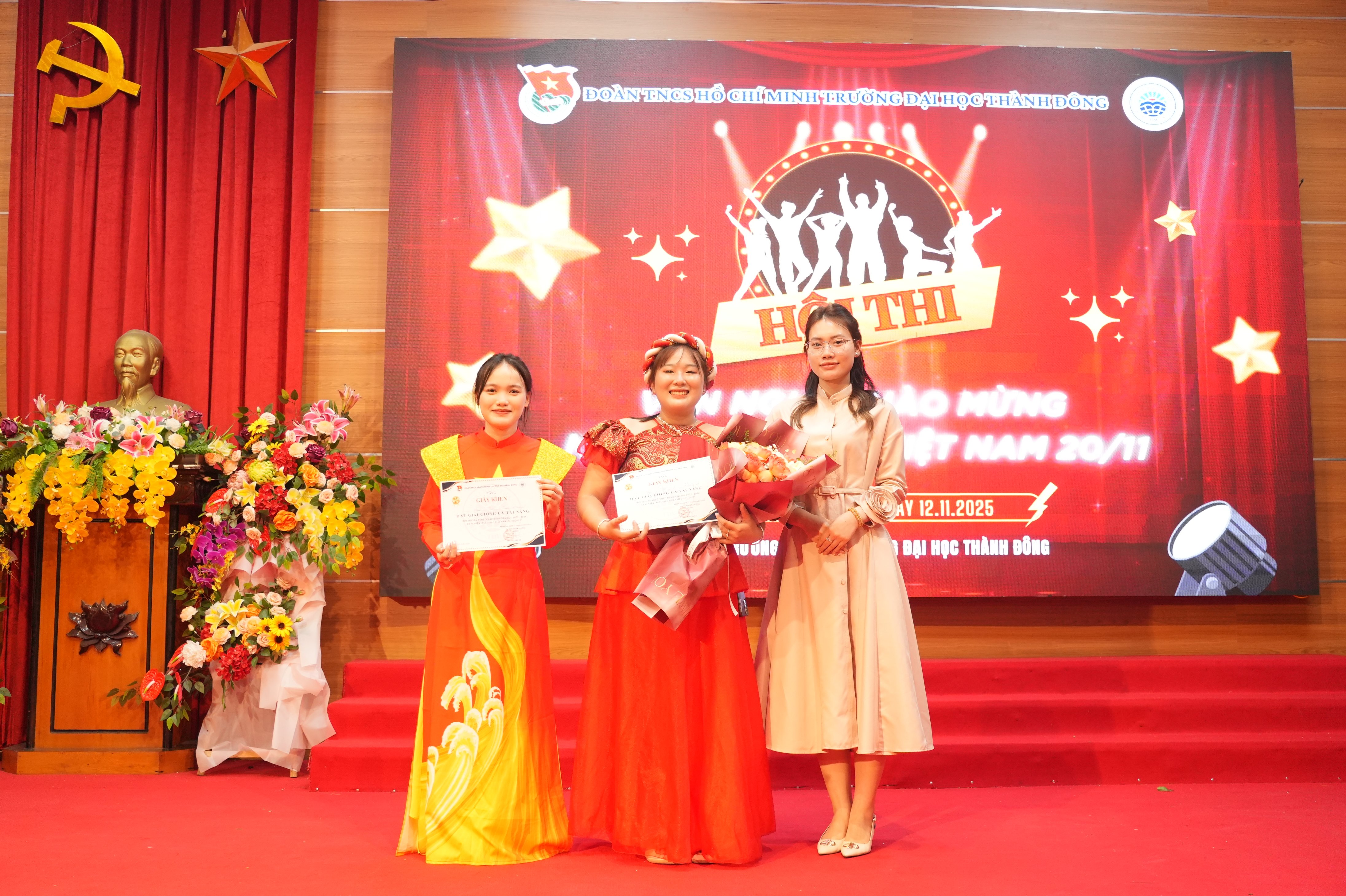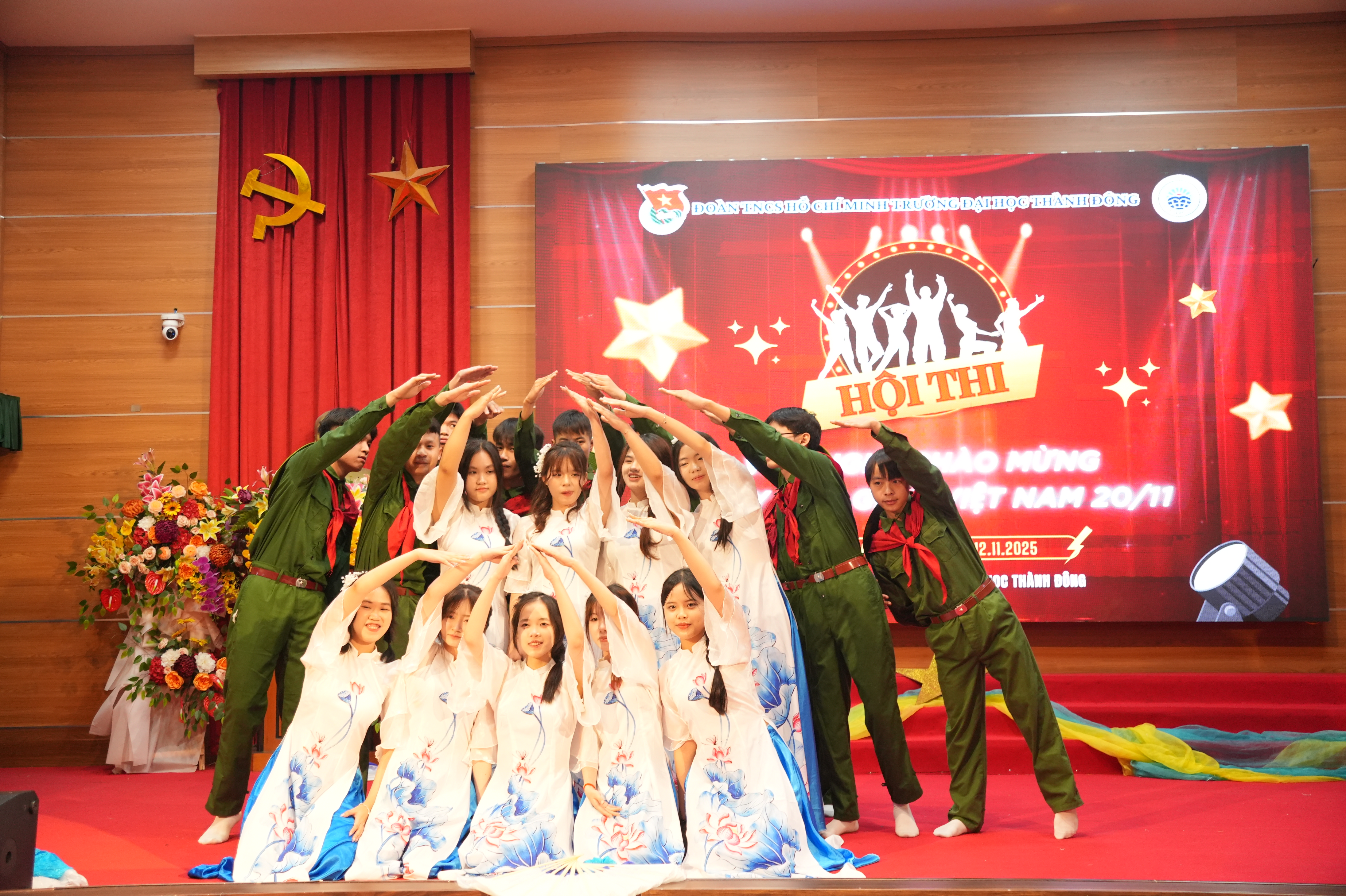 Tối ngày 12/11/2025, Đoàn Thanh niên Trường Đại học Thành Đông tổ chức Chung kết Hội thi Văn nghệ chào mừng Ngày Nhà giáo Việt Nam 20/11 trong không khí sôi nổi, trẻ trung và đầy cảm xúc. Đây là hoạt động trọng tâm nằm trong chuỗi sự kiện hướng tới kỷ niệm Ngày Nhà giáo Việt Nam, thể hiện tinh thần “Tôn sư trọng đạo”, tri ân các thầy cô giáo, đồng thời lan tỏa tình yêu thương, niềm tự hào và tinh thần gắn kết trong cộng đồng sinh viên Thành Đông.