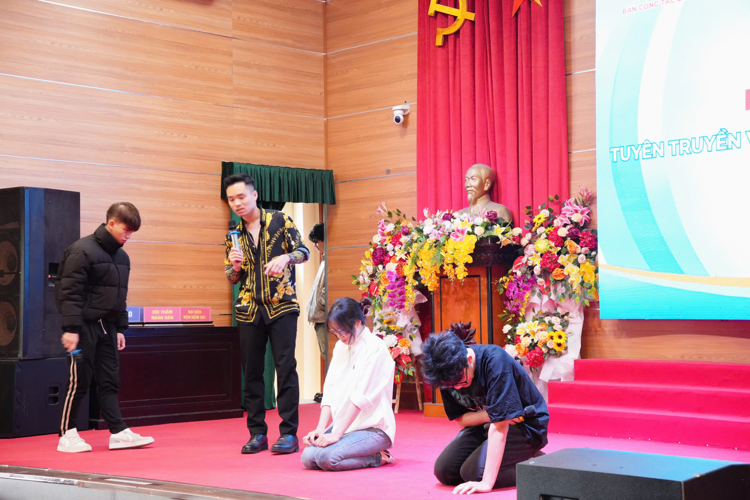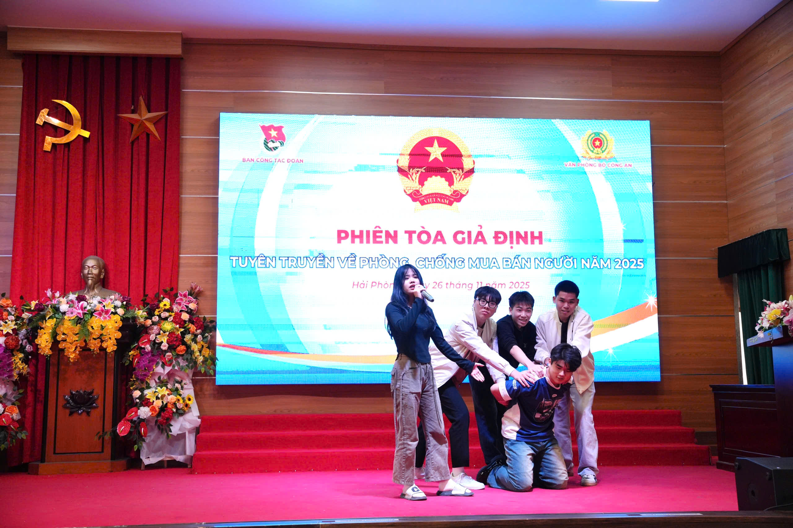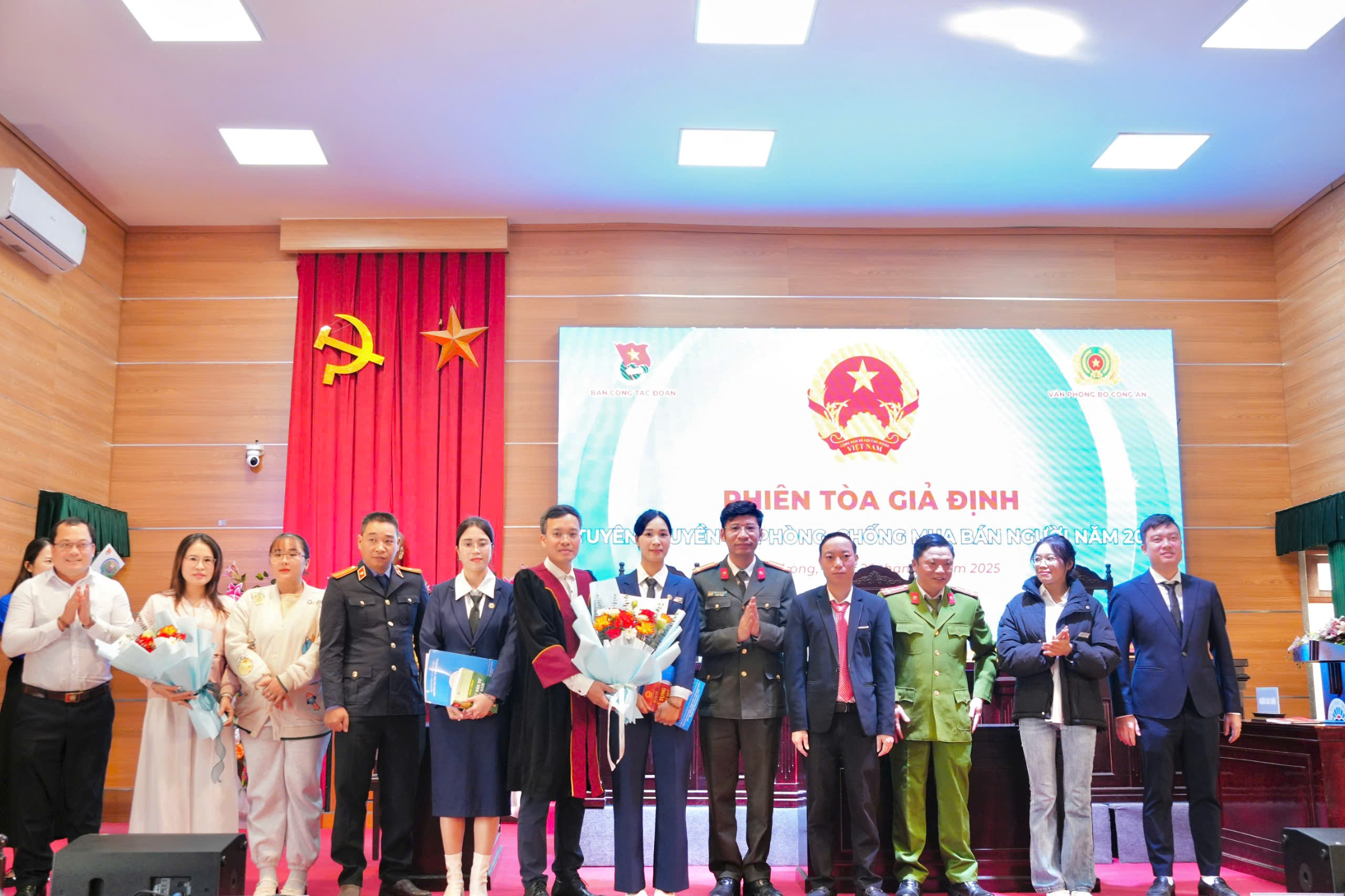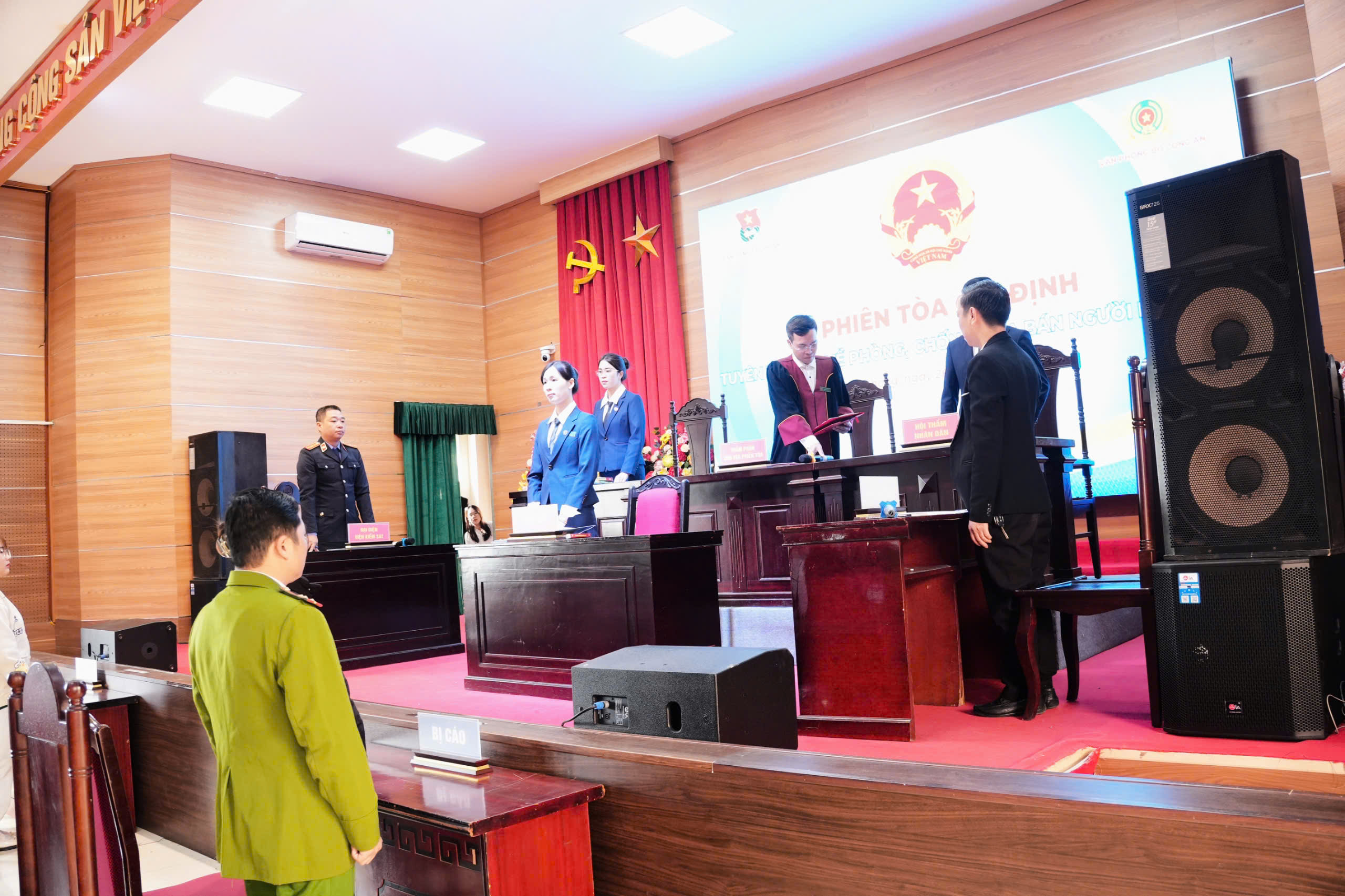 Sinh viên Khoa Luật tái hiện phiên tòa xét xử vụ án mua bán người, giúp đoàn viên hiểu rõ quy trình tố tụng và mức độ nghiêm minh của pháp luật.