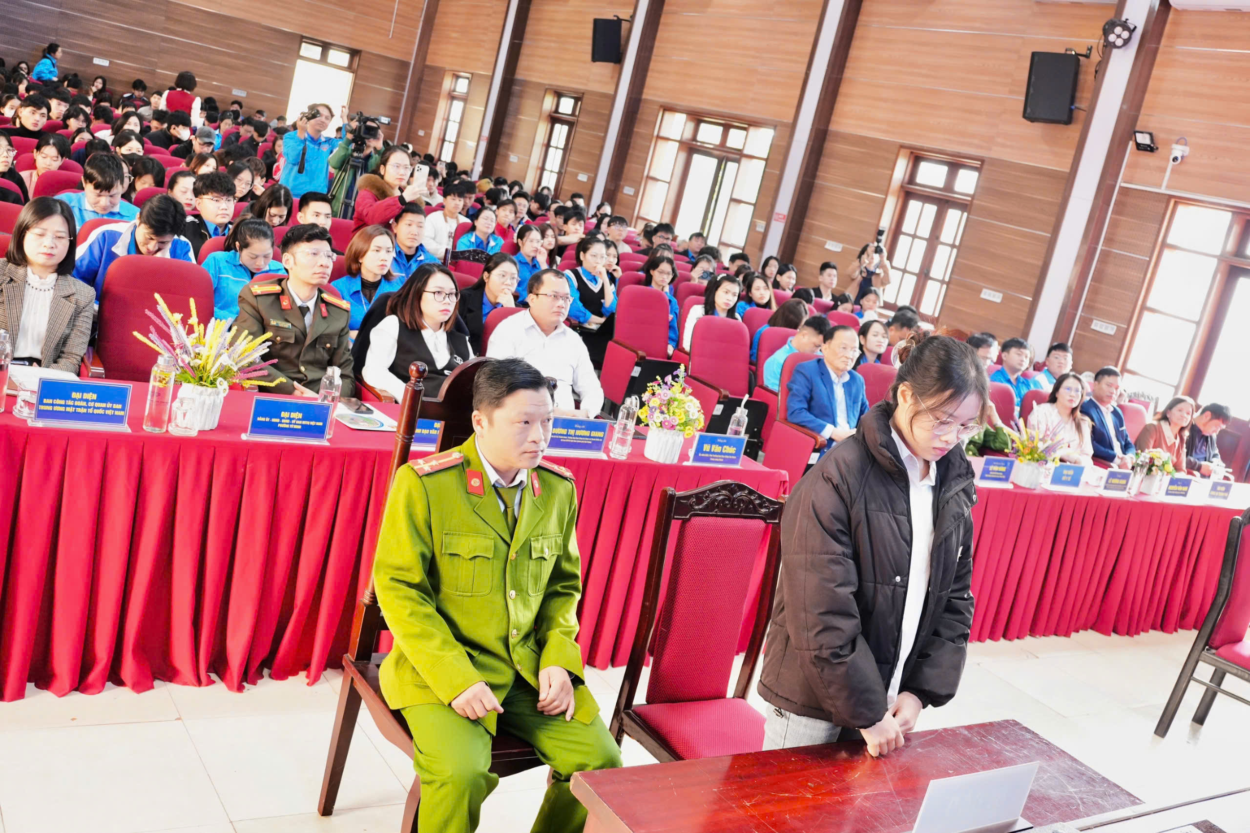 Phiên tòa giả định đã mô phỏng đầy đủ các bước tố tụng, từ xét hỏi, tranh luận đến tuyên án, giúp đoàn viên thanh niên có cái nhìn trực quan về cách thức hoạt động của tội phạm, mức độ nguy hiểm và sự nghiêm minh của pháp luật.