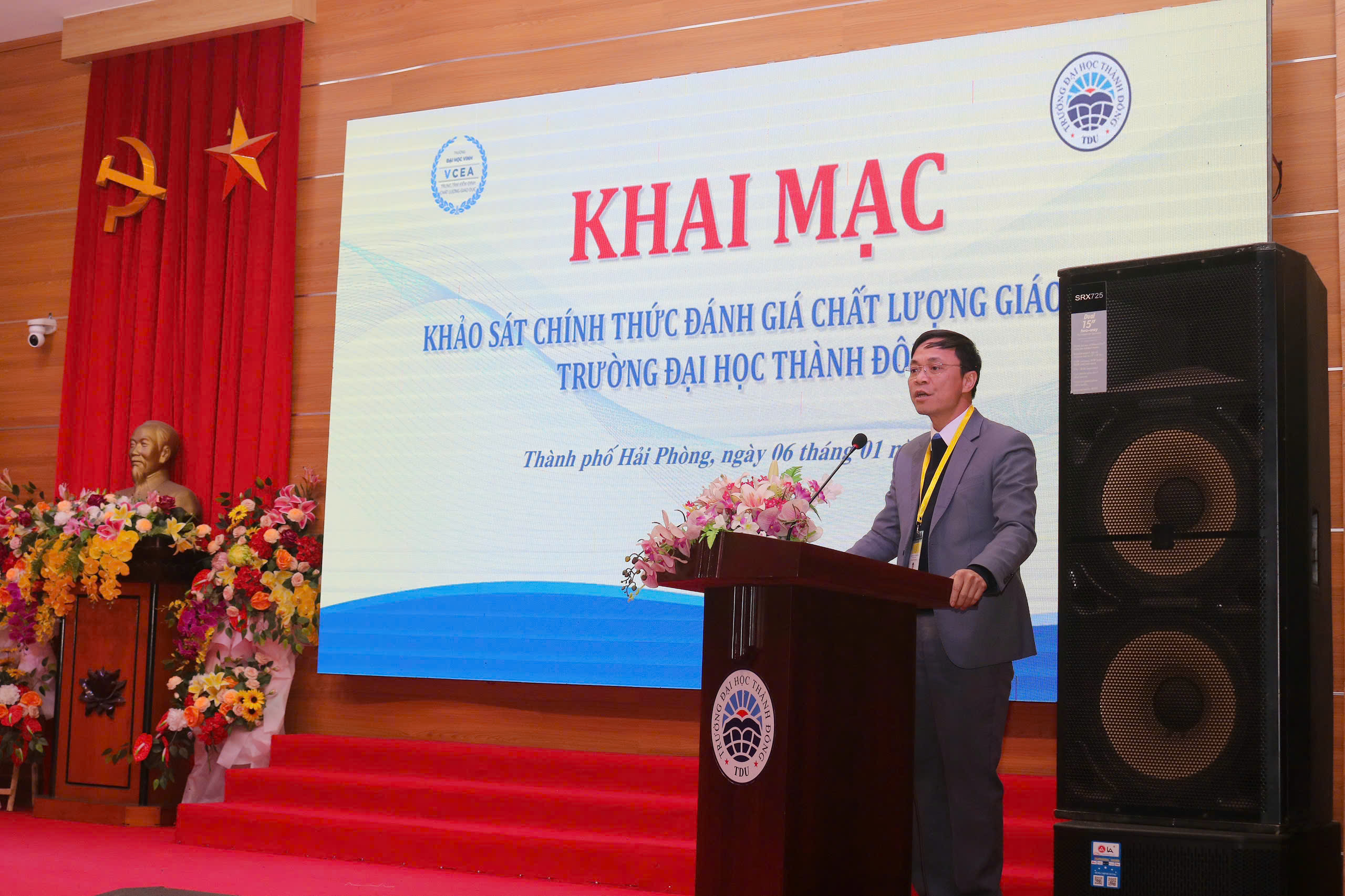 Lãnh đạo Trường Đại học Thành Đông đã phát biểu chào mừng, giới thiệu tổng quan về hệ thống bảo đảm chất lượng bên trong, chính sách chất lượng và quá trình tự đánh giá được triển khai nghiêm túc, bài bản.