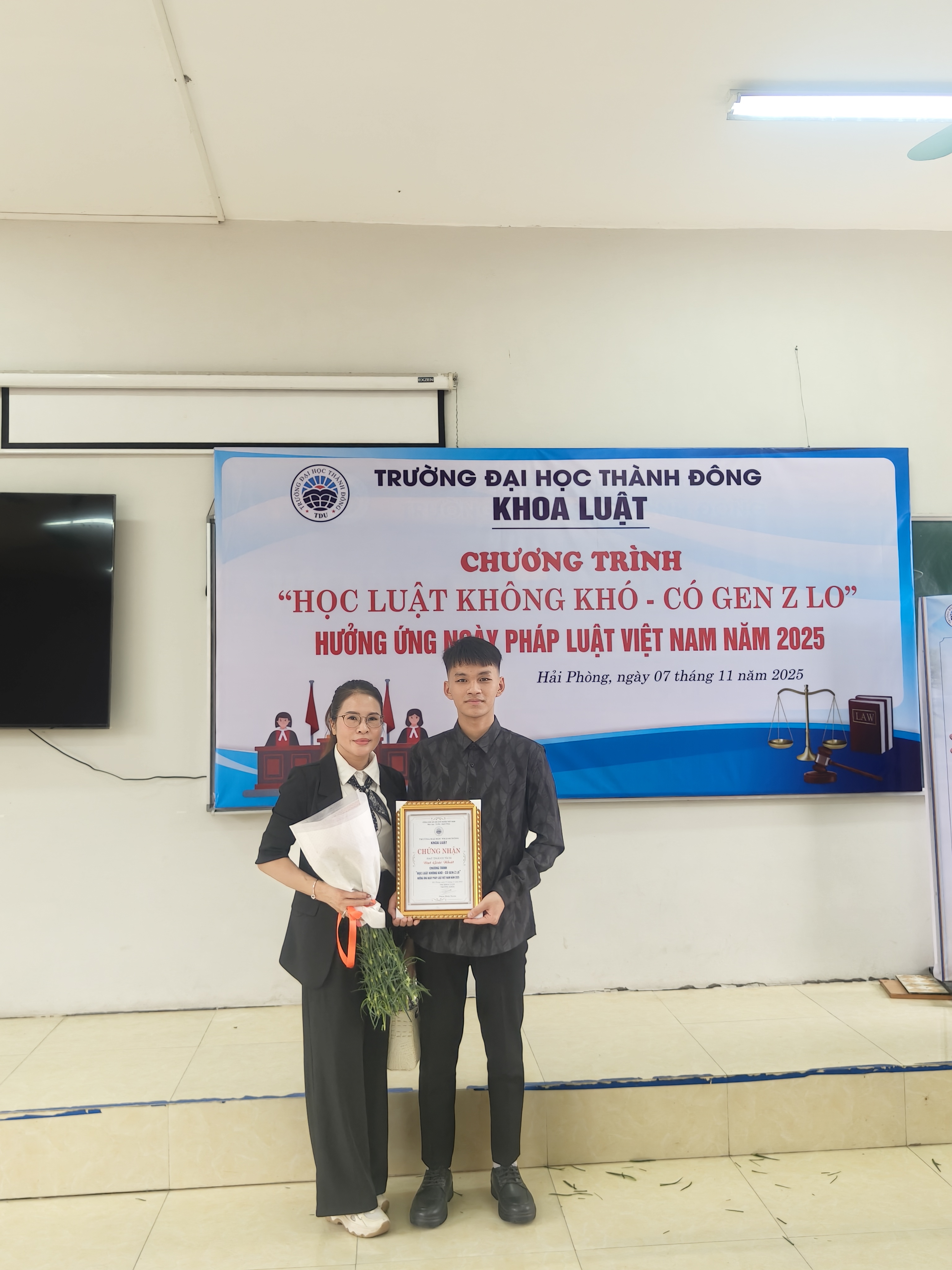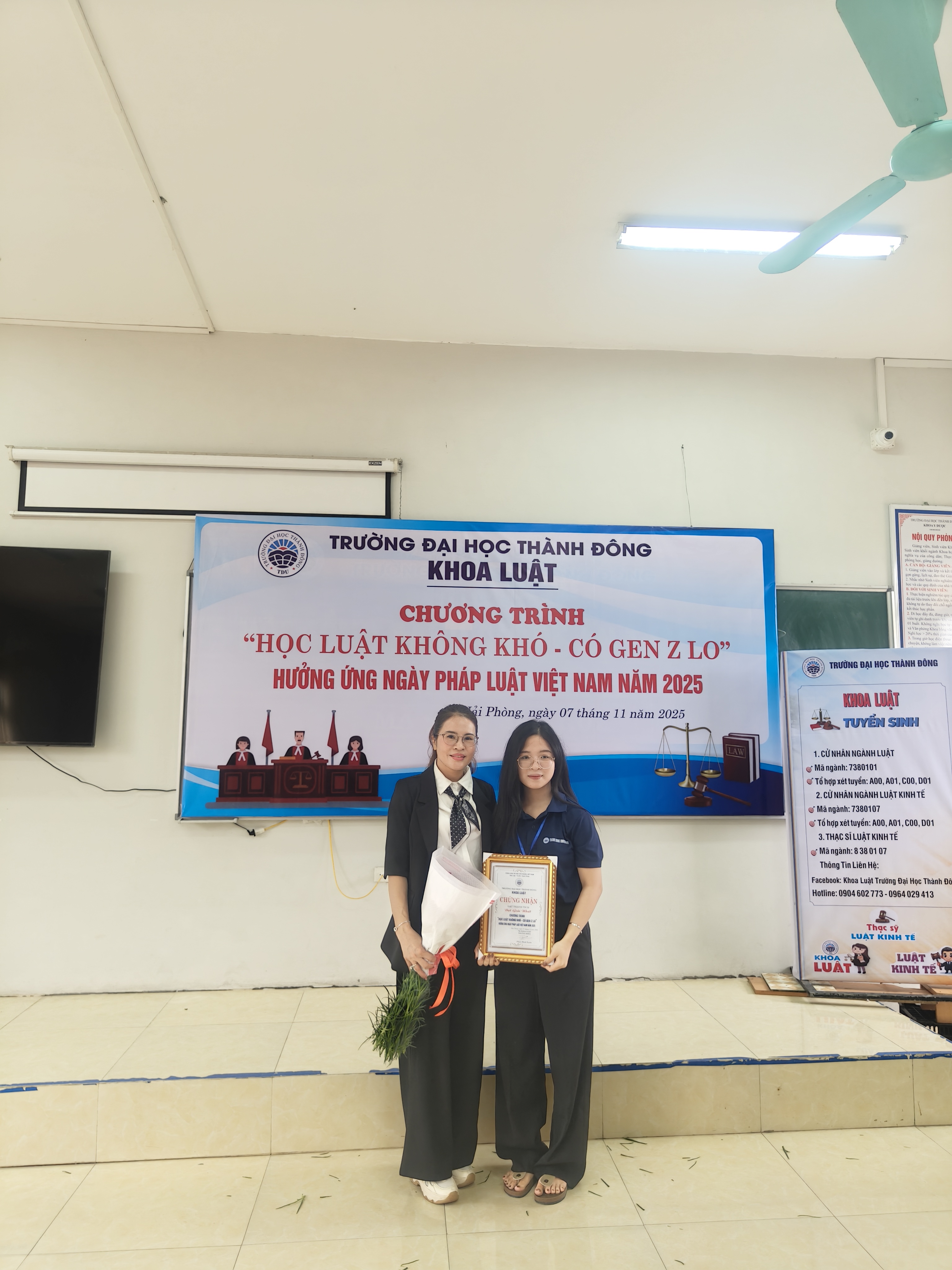 Chương trình “Học luật không khó – Có Gen Z lo” không chỉ là sân chơi học thuật mà còn là điểm nhấn trong chuỗi hoạt động hưởng ứng Ngày Pháp luật Việt Nam của Trường Đại học Thành Đông. Hoạt động góp phần khẳng định tinh thần đổi mới trong giảng dạy và học tập của Khoa Luật – nơi mỗi sinh viên được khơi dậy đam mê, bản lĩnh và trách nhiệm với cộng đồng.