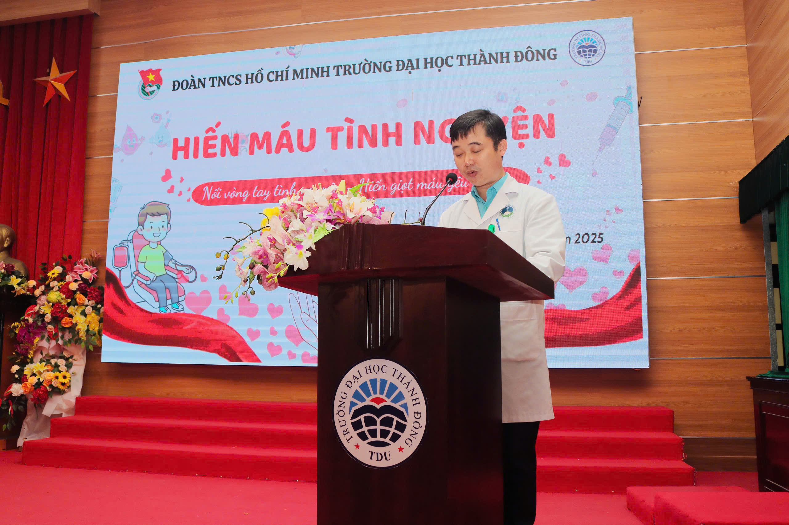 Phát biểu tại sự kiện, đại diện Ban Giám hiệu: PGS, TS. Lê Văn Hùng - Chủ tịch Hội đồng Trường, Hiệu trưởng ghi nhận và đánh giá cao tinh thần trách nhiệm của tuổi trẻ Thành Đông, đồng thời nhấn mạnh rằng hiến máu nhân đạo không chỉ là hành động cứu người, mà còn là biểu hiện sống động của lòng nhân ái, trách nhiệm xã hội và giá trị cộng đồng. Đại diện Đoàn trường cũng chia sẻ mong muốn nhân rộng hơn nữa phong trào hiến máu trong sinh viên, góp phần hình thành lối sống đẹp trong môi trường giáo dục đại học.