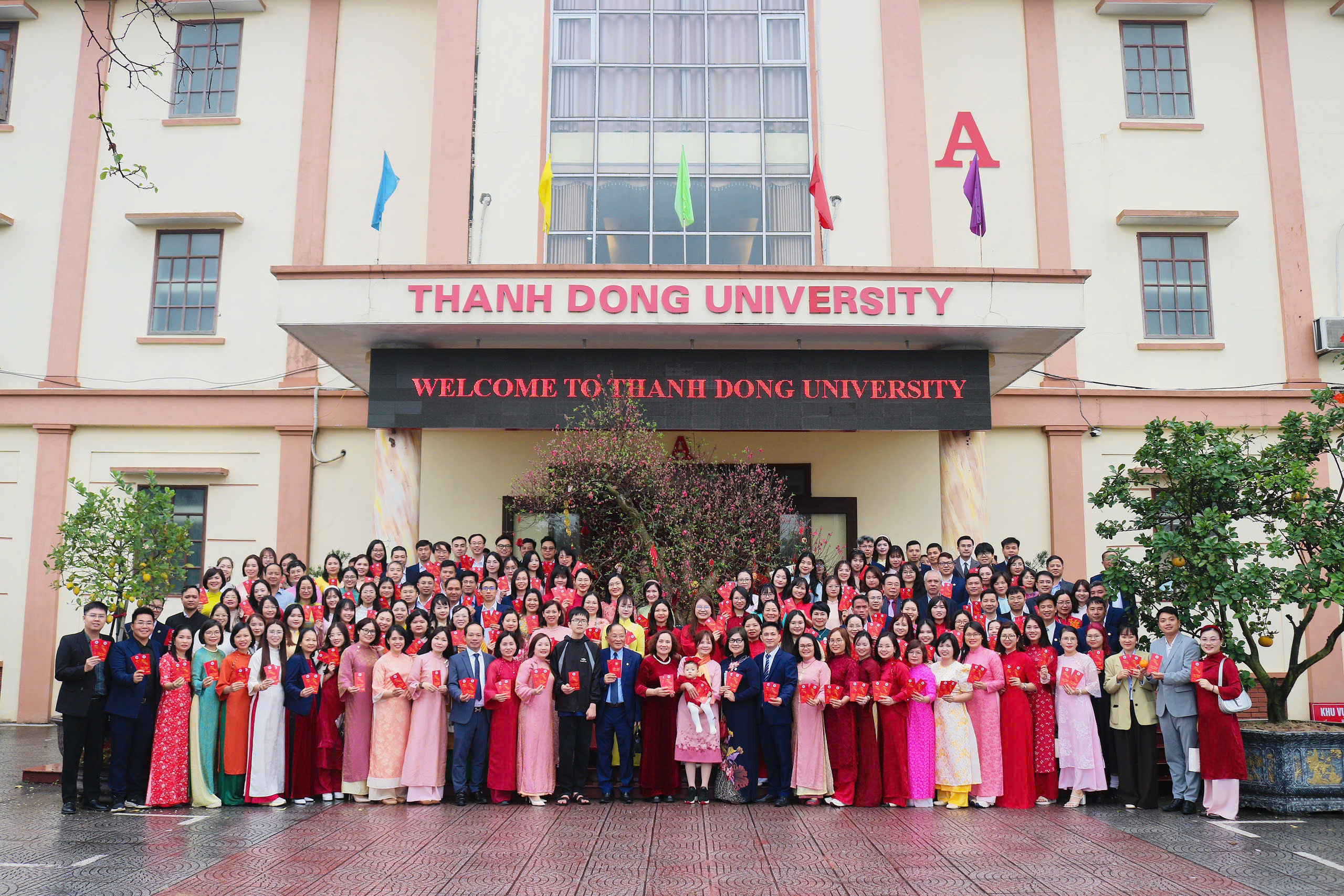 Tập thể lãnh đạo, cán bộ, giảng viên, nhân viên Trường Đại học Thành Đông chụp ảnh lưu niệm đầu Xuân Bính Ngọ 2026.