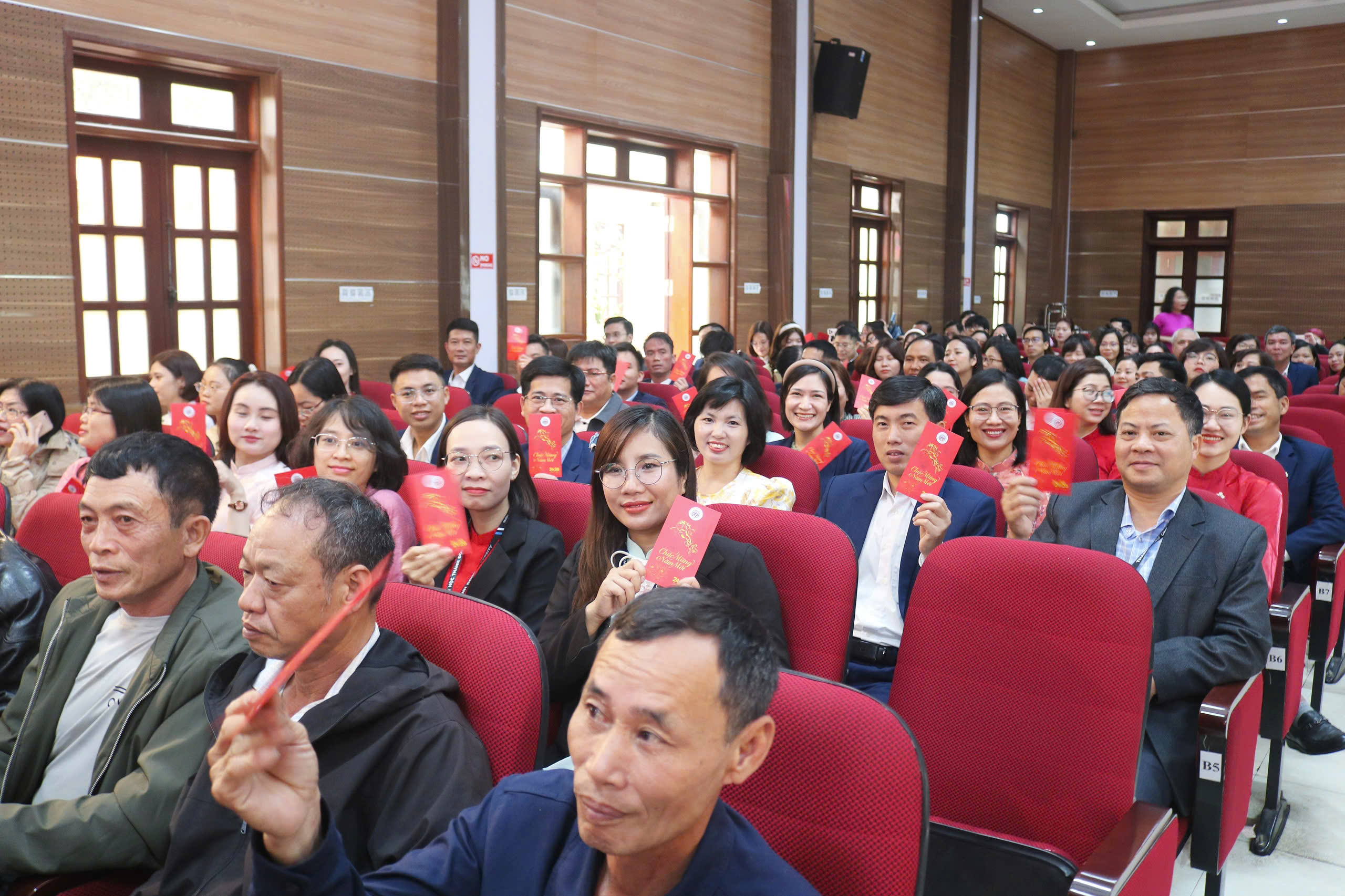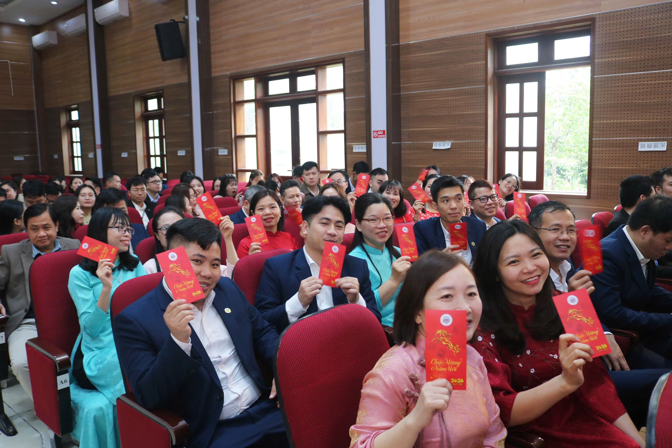 Không khí buổi lễ thêm phần phấn khởi với những lời chúc đầu xuân từ các đơn vị, khoa, phòng ban. Những cái bắt tay, những nụ cười và ánh mắt đầy niềm tin đã thể hiện sự đồng thuận và khát vọng phát triển của tập thể Nhà trường. Nghi thức chúc mừng năm mới và trao lì xì đầu xuân mang ý nghĩa động viên, tiếp thêm động lực để toàn thể cán bộ, giảng viên, nhân viên bước vào năm 2026 với tinh thần hứng khởi.