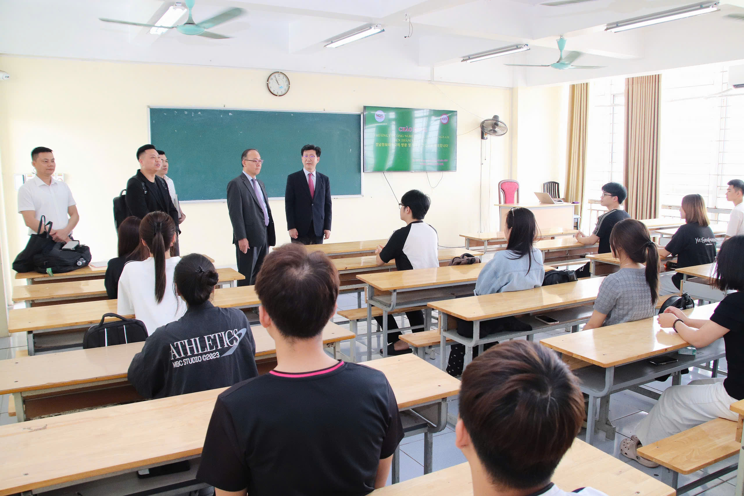 Bên cạnh nội dung làm việc chính thức, đoàn công tác đã trực tiếp thăm lớp sinh viên dự kiến tham gia chương trình D2-6 kỳ tháng 9/2026. Hoạt động này giúp tăng cường sự kết nối, tạo điều kiện để sinh viên được trao đổi trực tiếp với đại diện nhà trường Hàn Quốc, qua đó hiểu rõ hơn về lộ trình học tập và cơ hội phát triển trong tương lai.