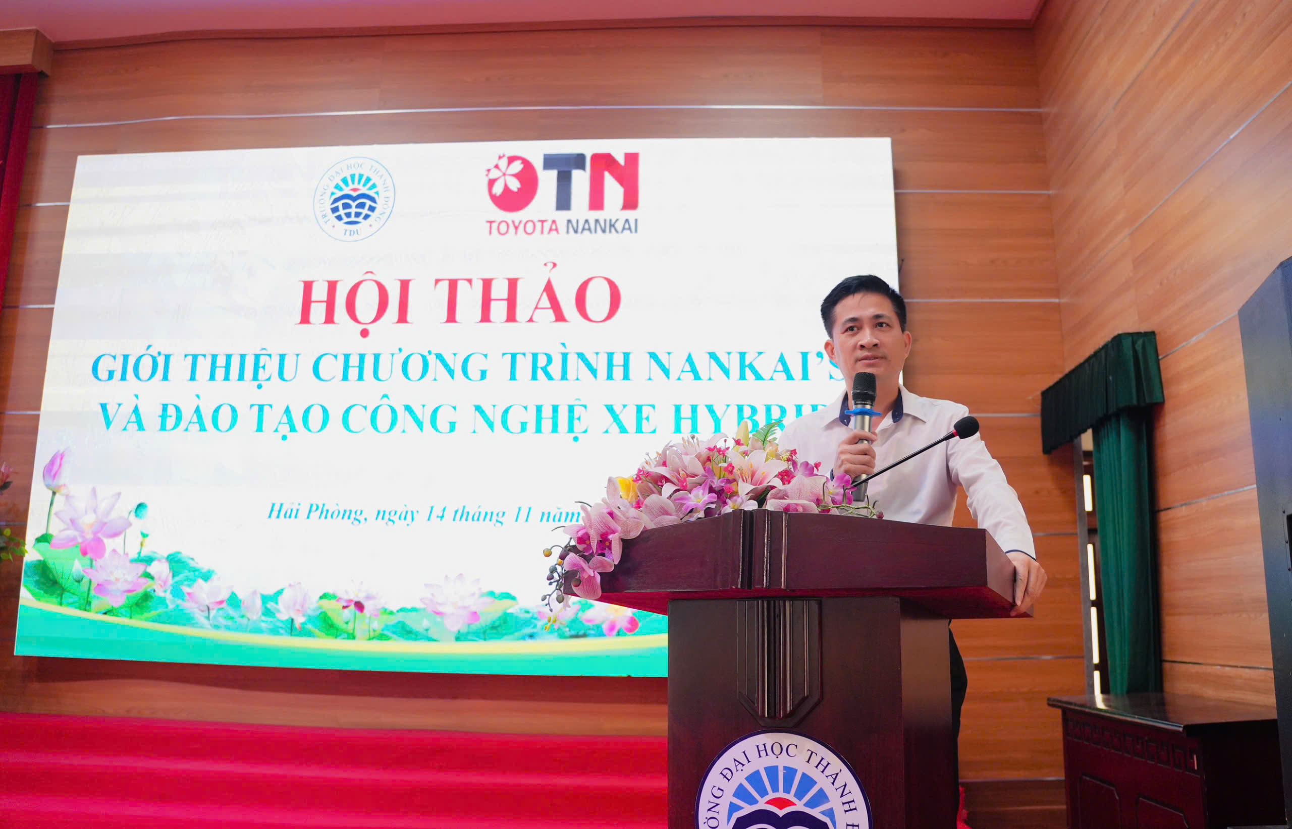 Phát biểu mở đầu chương trình, thầy Nguyễn Văn Nam - Phó Hiệu trưởng Nhà trường gửi lời chào mừng đến đoàn doanh nghiệp và khẳng định ý nghĩa quan trọng của hoạt động hợp tác này. Nhà trường nhấn mạnh định hướng phát triển đội ngũ kỹ sư, kỹ thuật viên đáp ứng tiêu chuẩn quốc tế, trong đó Nhật Bản luôn là thị trường tiềm năng với nhu cầu nhân lực chất lượng cao trong lĩnh vực công nghệ ô tô. Sự đồng hành của Toyota Nankai Hải Phòng là cơ hội để sinh viên tiếp cận các chương trình đào tạo thực tế, mở rộng tầm nhìn và phát triển nghề nghiệp.