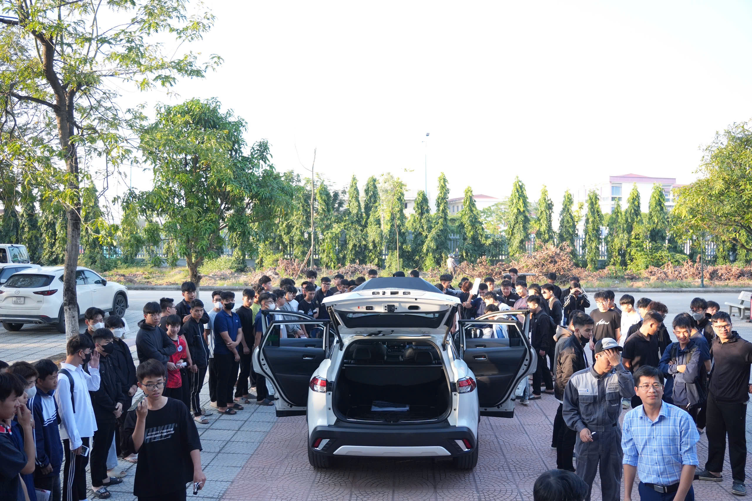Đặc biệt, Toyota Nankai Hải Phòng mang đến buổi đào tạo một chiếc Toyota Corolla Cross Hybrid 2025 để sinh viên trực tiếp quan sát, thực hành và tiếp cận công nghệ trên phương tiện thực tế. Hoạt động trải nghiệm này nhận được sự hưởng ứng nhiệt tình của sinh viên, giúp các em hiểu rõ hơn về quy trình kiểm tra, bảo dưỡng và vận hành hệ thống Hybrid.