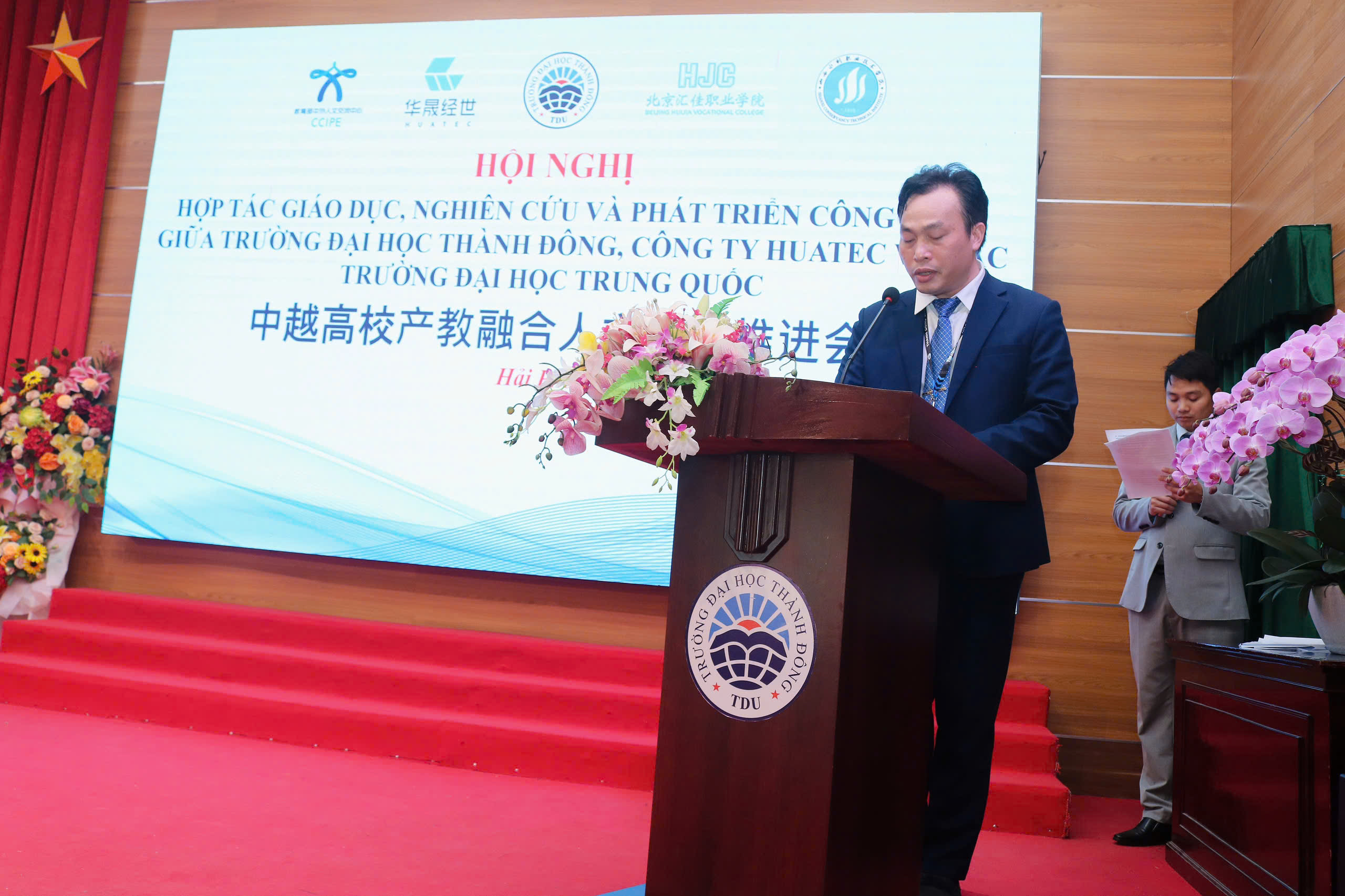 Trong phần phát biểu của mình, ông Trương Học Nhân, Phó Giám đốc Trung tâm Giao lưu Nhân văn Quốc tế (Bộ Giáo dục Trung Quốc), nhấn mạnh sự coi trọng của phía bạn đối với hợp tác giáo dục với Việt Nam và khẳng định sẵn sàng phối hợp hỗ trợ Trường Đại học Thành Đông trong các hoạt động trao đổi học thuật, đào tạo và nghiên cứu.