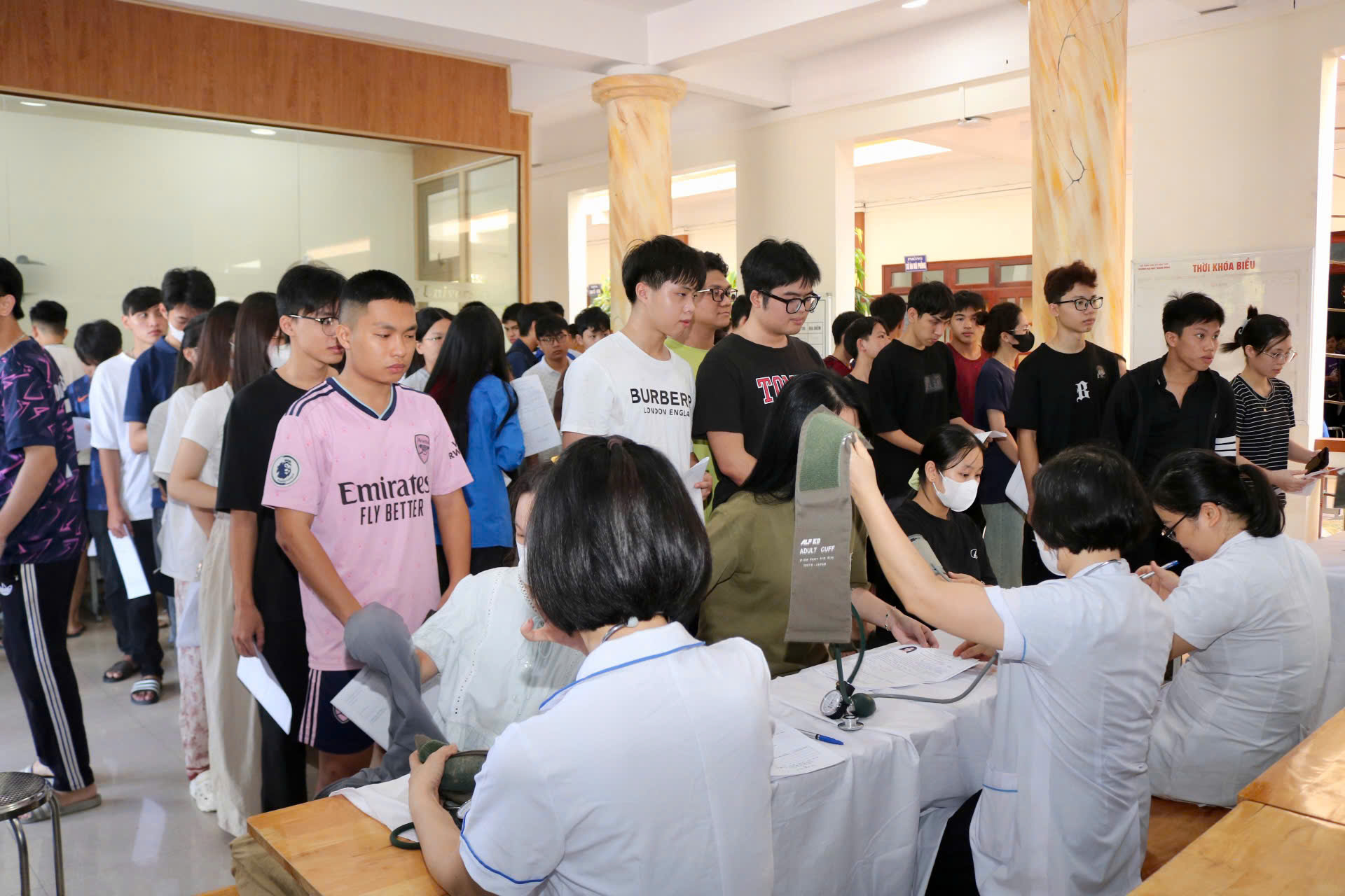 Ngay từ đầu buổi sáng, khu vực khám sức khỏe đã đón đông đảo sinh viên K16 tham gia. Dưới sự hướng dẫn của đội ngũ y, bác sĩ chuyên môn, các sinh viên lần lượt thực hiện các bước kiểm tra như đo chiều cao, cân nặng, huyết áp, thị lực, tai – mũi – họng, răng hàm mặt, da liễu và nội khoa. Quá trình được tổ chức khoa học, nhanh gọn, bảo đảm tính chính xác và an toàn.