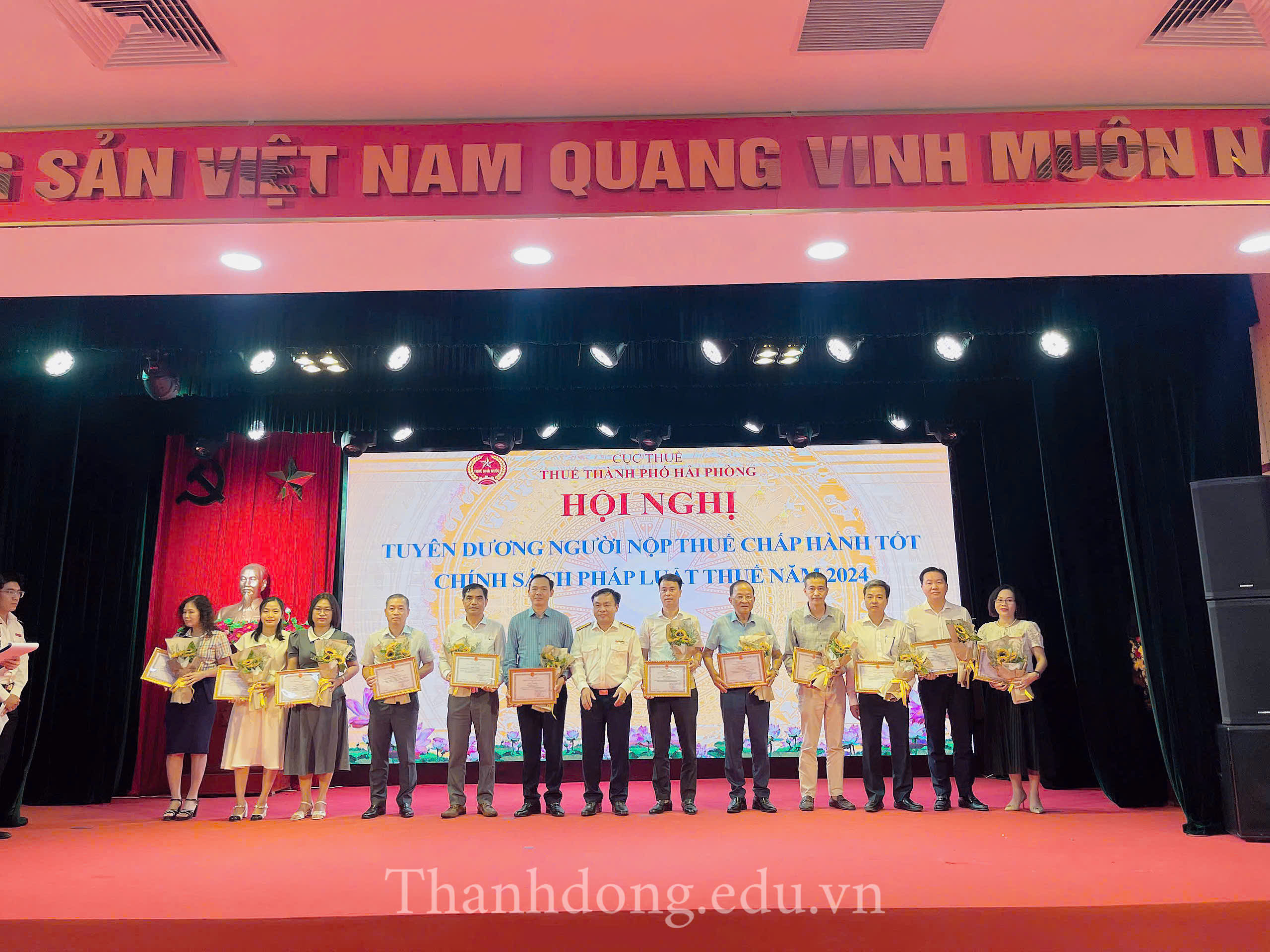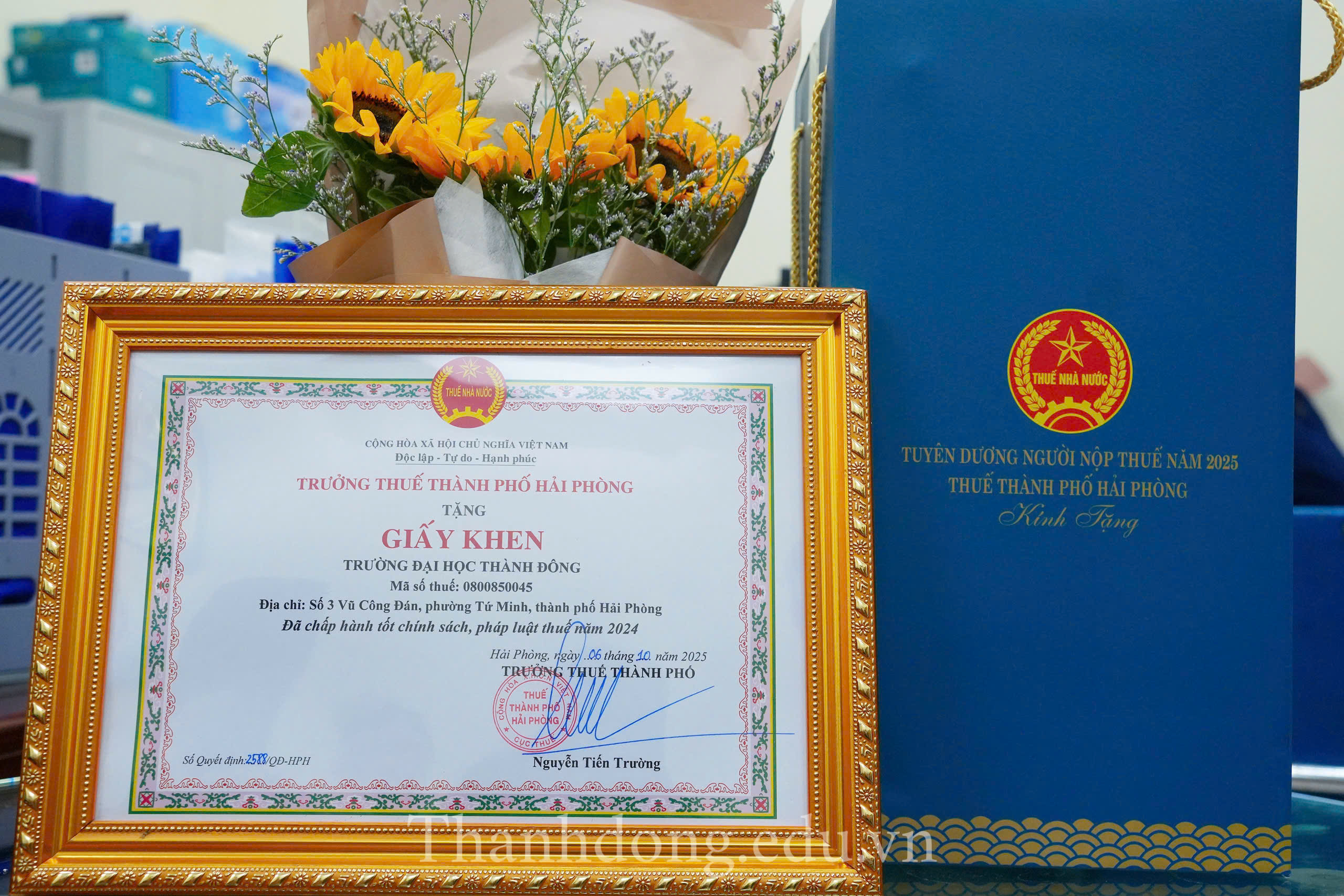 Trong danh sách được tuyên dương, Trường Đại học Thành Đông vinh dự là một trong những đơn vị giáo dục được Cục Thuế Thành phố Hải Phòng khen thưởng, với thành tích chấp hành tốt chính sách, pháp luật thuế năm 2024.